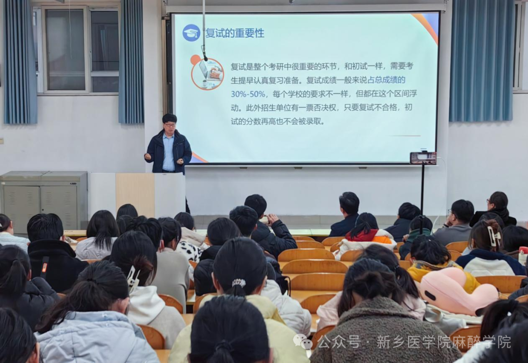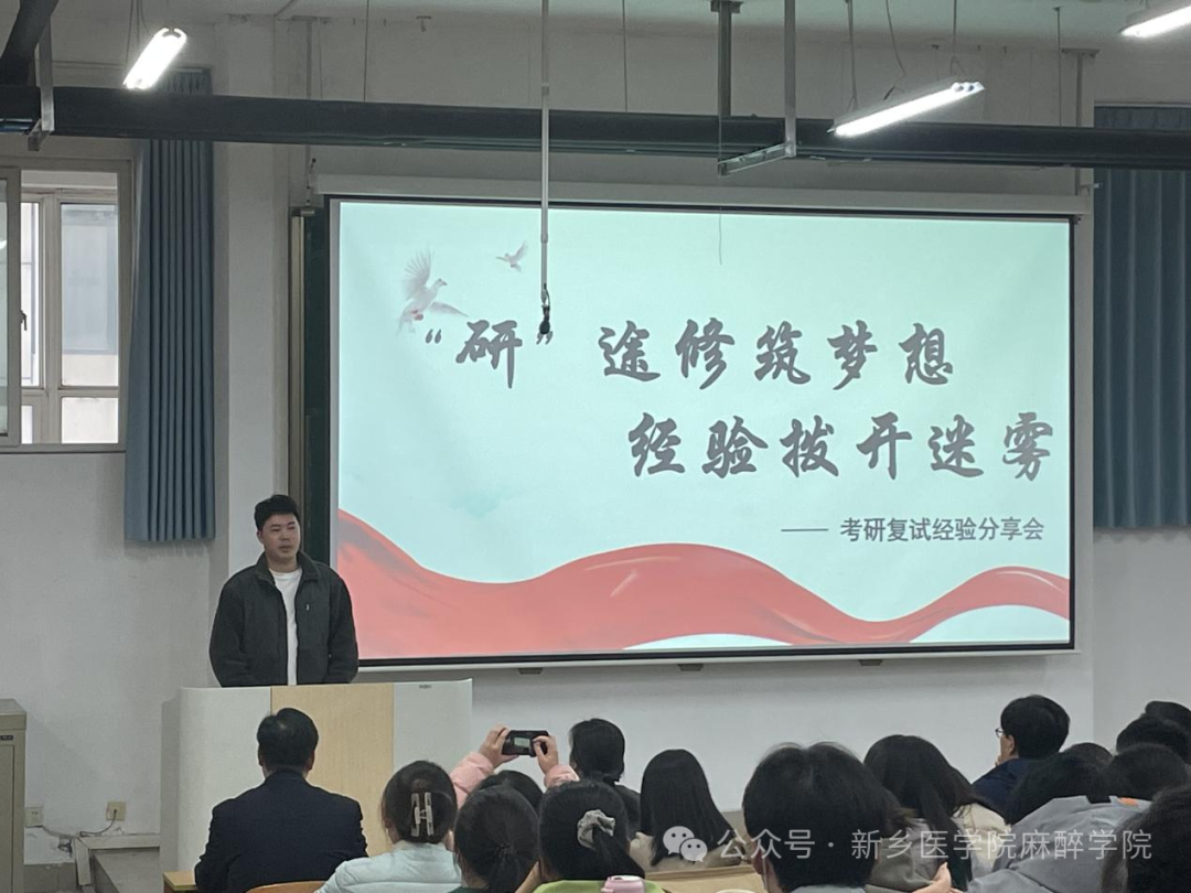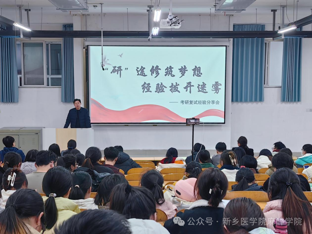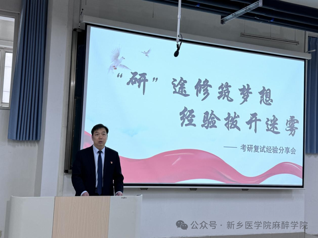 阳春三月,万物复苏。2024年考研复试将即,为帮助考生有的放矢地备战复试,缓解备考压力,提高复试成功率,华亿在线体育(中国)官方网站第一临床学院与麻醉学院于3月6日下午5:30在卫辉校区教学楼1301教室共同举办“‘研’途修筑梦想,经验拨开迷雾”考研复试分享交流会。华亿在线体育(中国)官方网站第一附属医院副院长寇全强,麻醉学院党总支副书记王琰莅临本次分享交流会。本次分享交流会特邀华亿在线体育(中国)官方网站第一附属医院两位资深的硕士生导师、历年研究生复试评委岳修勤教授和张平教授以及三位优秀校友,共同为考研学子提供宝贵的复试经验和技巧。