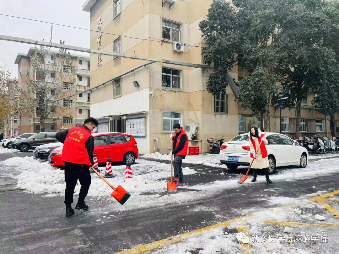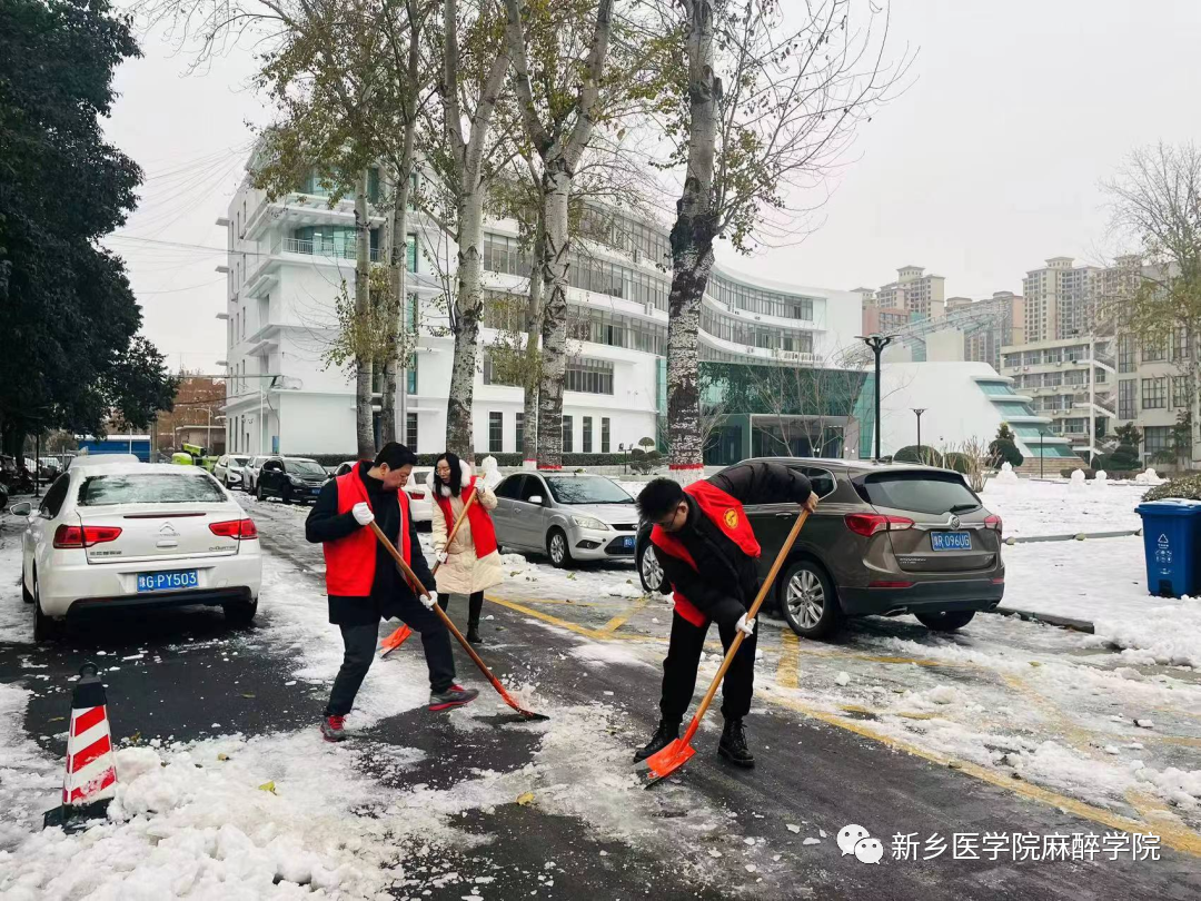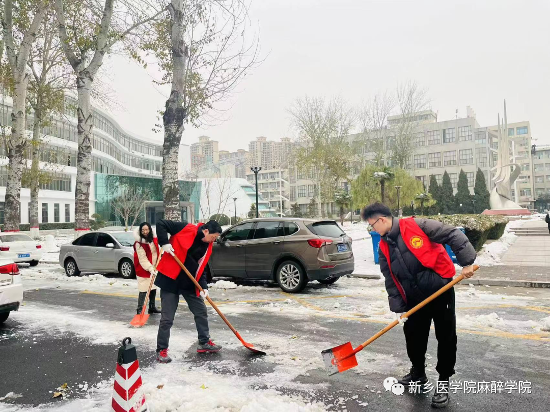 2023年12月15日,为清理积雪,保证道路通畅,方便师生出行,麻醉学院积极开展“除冰清雪、温暖人心”的志愿活动。