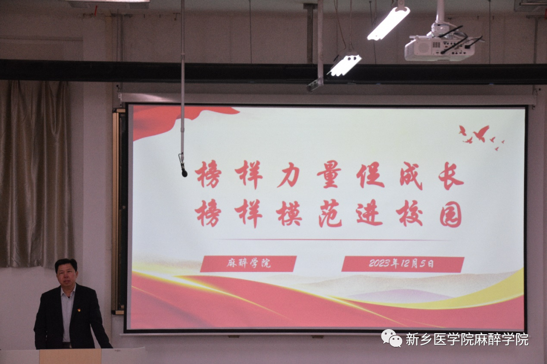 为引导我院青年学生树立正确的择业观、就业观,积极在社会服务、强国建设、民族复兴伟业中挺膺担当,12月5日,麻醉学院于1301教室开展“榜样力量促成长,榜样模范进校园”主题宣讲活动。本次主题宣讲活动由麻醉学院辅导员李佳主持,麻醉学院党总支副书记王琰、华亿在线体育(中国)官方网站第一附属医院麻醉学部主任岳修勤受邀出席,我院2020级麻醉学院全体学生参加本次活动。