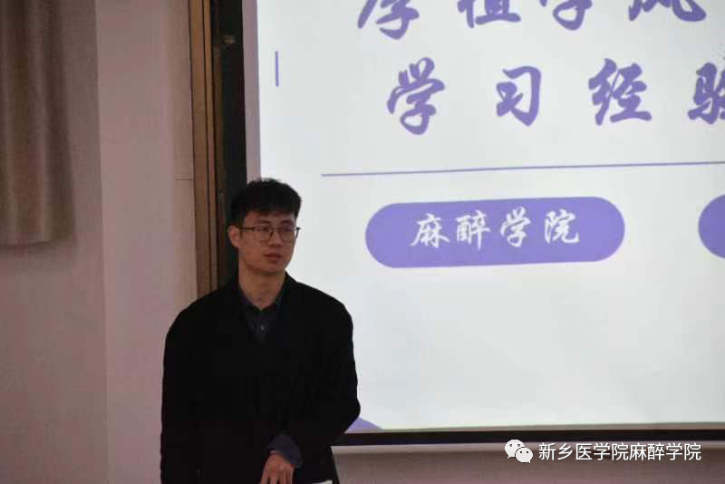 会议伊始,2020级麻醉学优秀学生代表陈昕茹进行了学习经验分享,向同学们分享了自己总结的关于学习方法、应试技巧等方面的内容,强调了学习态度的重要性。她建议学习要有针对性和技巧性,对所学的重难点部分可以通过刷题的方式加深理解和记忆。