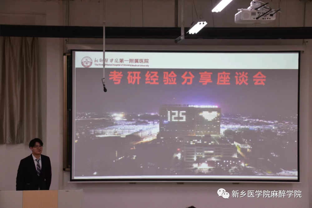 为进一步加强学风建设,营造良好学习氛围,促进学生的学习与考研积极性,11月24日上午,我院于卫辉校区11号楼1301教室组织召开以“厚植学风,榜样领航”为主题的学习经验分享会。麻醉学院学生工作办公室副主任何昊和2020级全体同学参会。