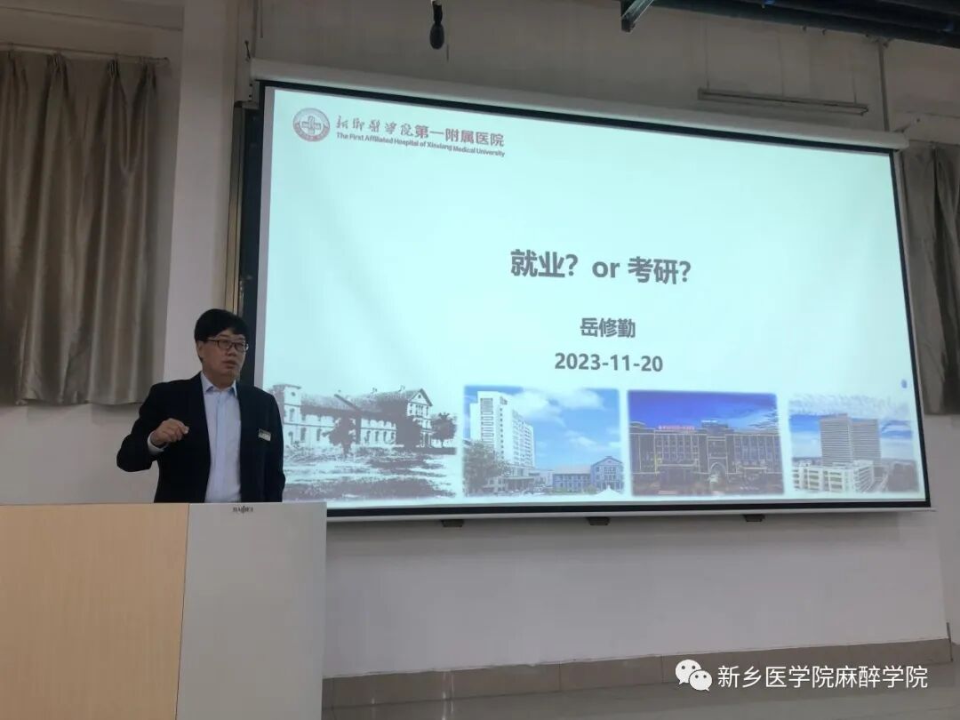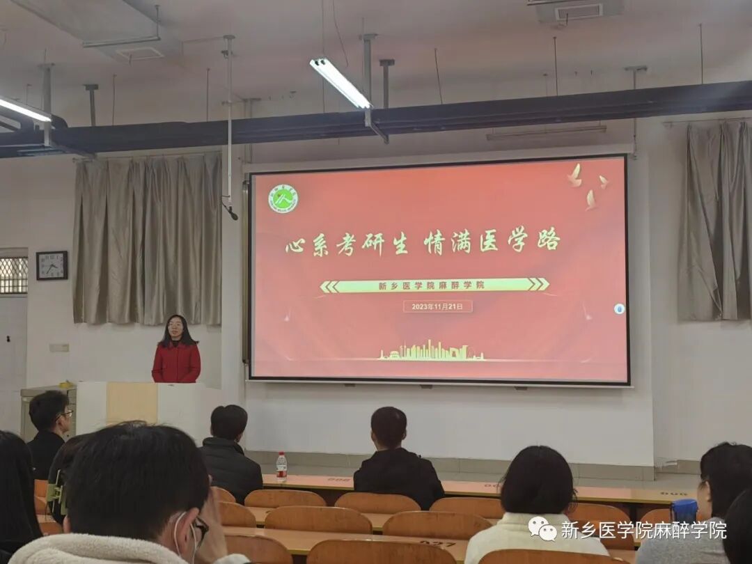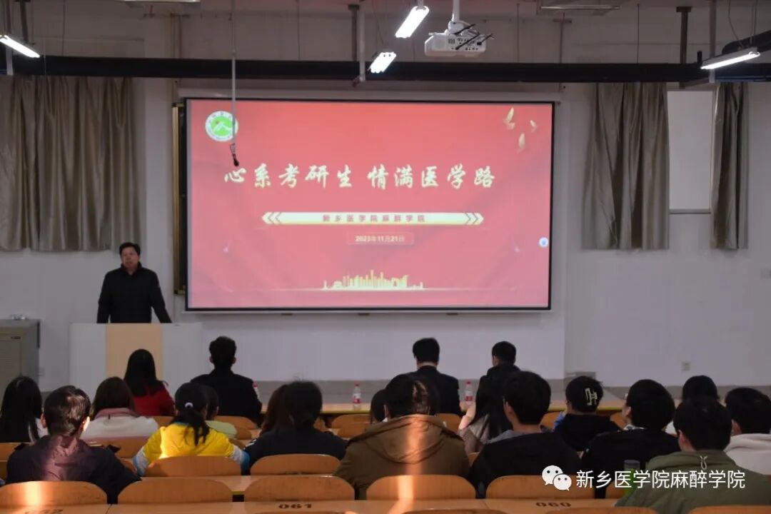 距离考研越来越近,为鼓励考研学子做好充分准备,助力我院学子提升考研斗志,麻醉学院于11月21日下午,在卫辉校区11号教学楼1301教室召开“心系考研生,情满医学路”助力考研活动。本次活动由麻醉学院辅导员李佳主持,麻醉学院党总支副书记王琰、华亿在线体育(中国)官方网站第一附属医院麻醉学部主任岳修勤、麻醉学部综合办公室主任刘俊、麻醉学院学生工作办公室副主任何昊受邀出席,2019级麻醉专业全体学生参加本次活动。
