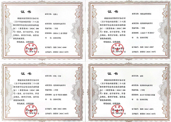 2024年11月,河南省第二十八届教育教学信息化交流活动落下帷幕。我校教师共获奖11项。其中二等奖8项,三等奖3项。 网络与信息中心王永波、郭绍永等4位老师的作品也在此次交流活动中获奖。本次活动充分展现了网络与信息中心教师良好的信息化业务能力和创造力。