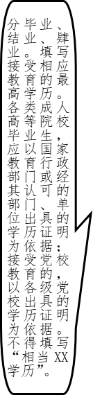 如:“高中”(本科生填写)、“本科”(研究生填写)、 |