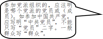 何时何地参加过何种民主党派或工商联,任何职务 |