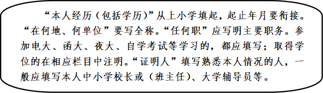 二、填写入党志愿书须用钢笔、签字笔或毛笔,并使用黑色或蓝黑色墨水。字迹要清晰、工整。表内的年、月、日一律用公历和阿拉伯数字。表内栏目没有内容填写时,应注明“无”。个别栏目填写不下时,可加附页。