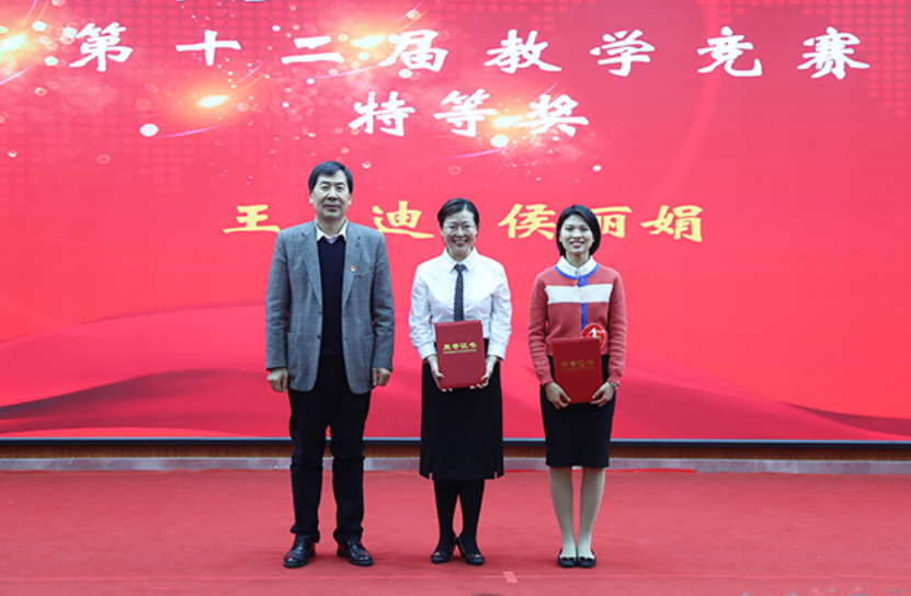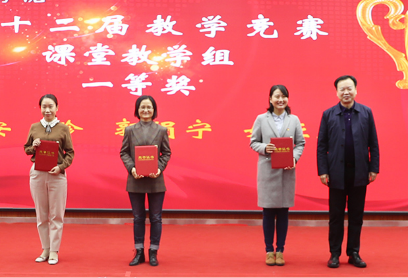 校领导为本次教学竞赛获奖教师颁发荣誉证书,并合影留念。