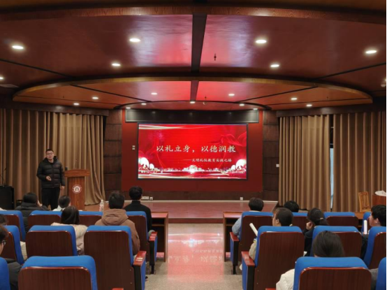 本网讯(杨冰洁/文 杨子轩/图)为扎实推进校园精神文明建设,提升师生综合素养,我院辅导员袁永庆于11月27日,在第三报告厅专门召开文明礼仪教育宣讲会,同学们积极参加。