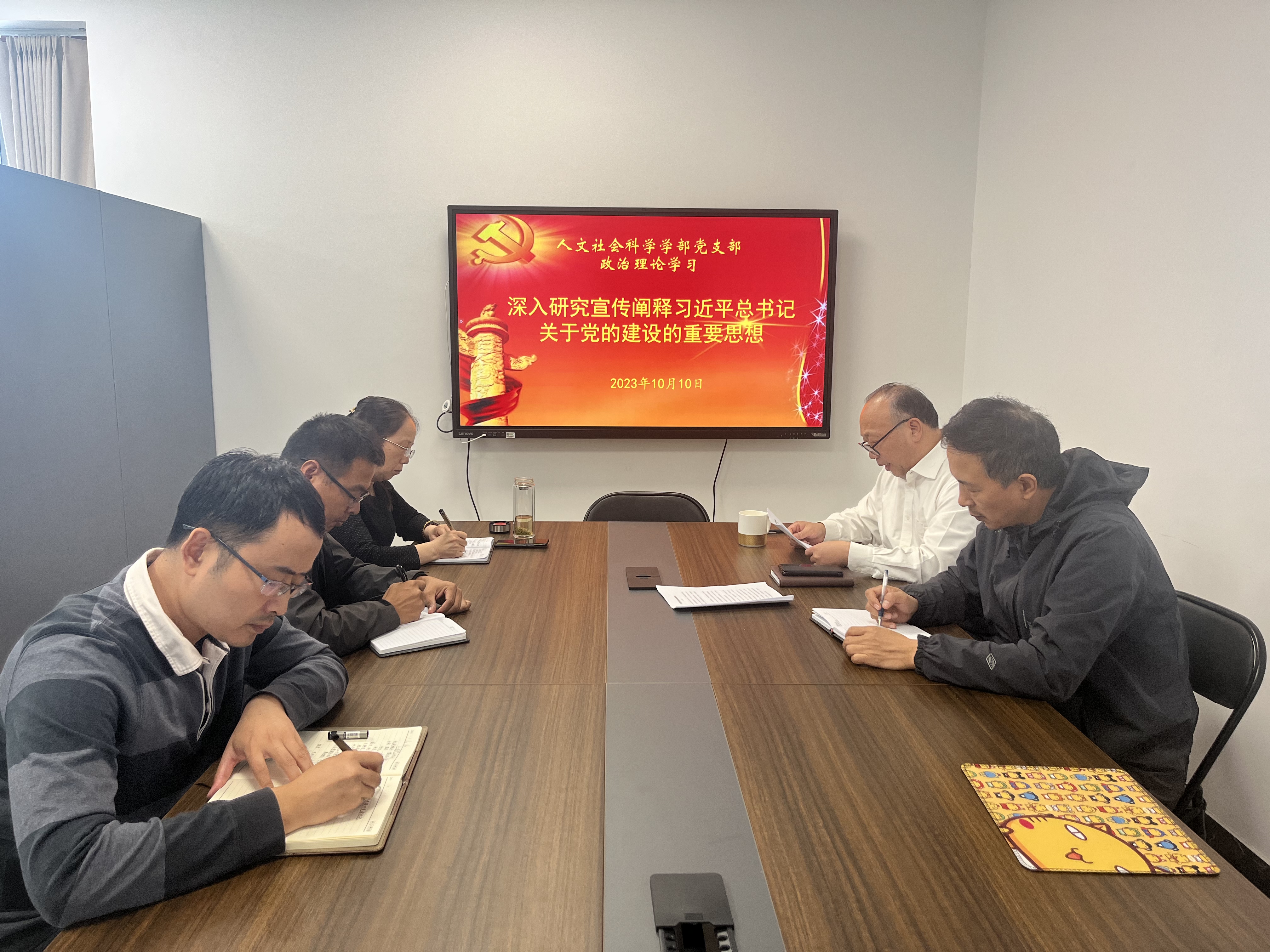 2023年10月10日上午,人文社会科学学部党支部在学部会议室召开支部党员大会,以“亮特色、建样板、创标杆”为主题开展主题党日活动。党支部书记刘雪立主持,全体党员参加。