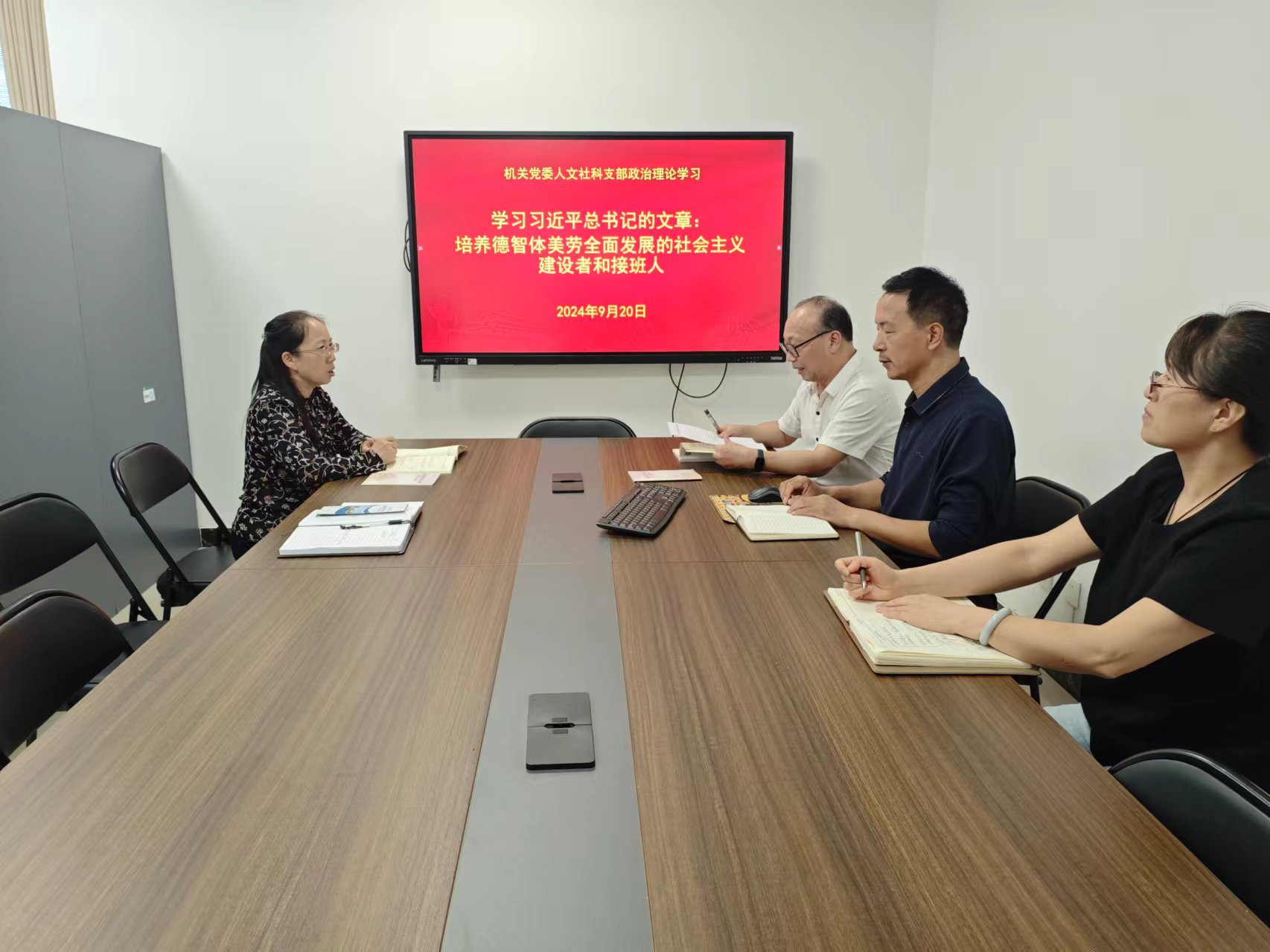 9月20日上午,机关党委人文社科支部在学部会议室召开支部党员大会,开展政治理论学习。党支部书记刘雪立主持,全体党员参加。