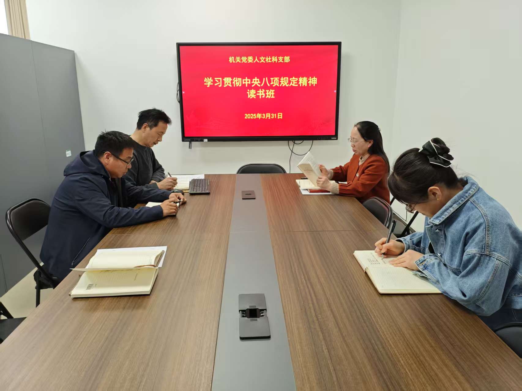 3月31日至4月1日,支部举办深入贯彻中央八项规定精神学习教育读书班。党支部副书记冯秋季主持,全体党员参加。