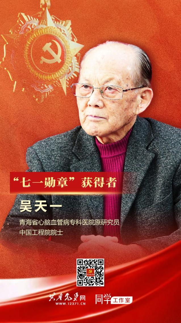 他是中国工程院院士吴天一,高原医学事业的开拓者、低氧生理学与高原医学专家。今年6月29日,他站上人民大会堂金色大厅领奖台,戴上了代表党内最高荣誉的“七一勋章”。