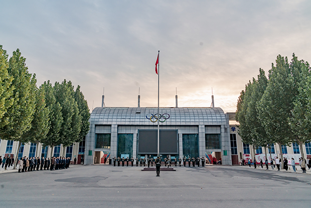 10月18日,新学期升国旗仪式在五环广场举行。校领导陈建国、任文杰、郝红军、陈清江、王辉、雒保军、朱武凌、邵金远出席仪式。校学生工作领导小组成员单位主要负责人,各学院党委(党总支)书记、副书记、团委书记、辅导员及学生代表200余人参加升国旗仪式。