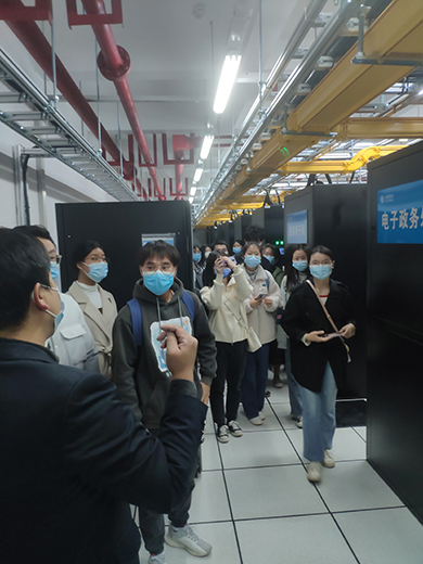 随后,学员们参观了新乡大数据云计算中心,在工作人员的带领下详细了解了中心的硬件设备、供电情况、应急储备和承办的相关业务。