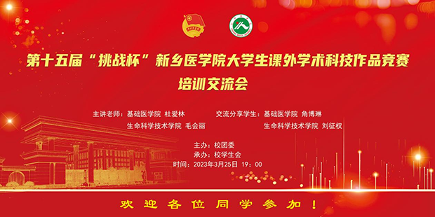 2023年3月25日晚,由校团委主办、校学生会承办的第十五届“挑战杯”华亿在线体育(中国)官方网站大学生课外学术科技作品竞赛培训交流会在南校区博济楼举办。来自各学院热衷科研学术研究的同学参加了本次培训交流会。