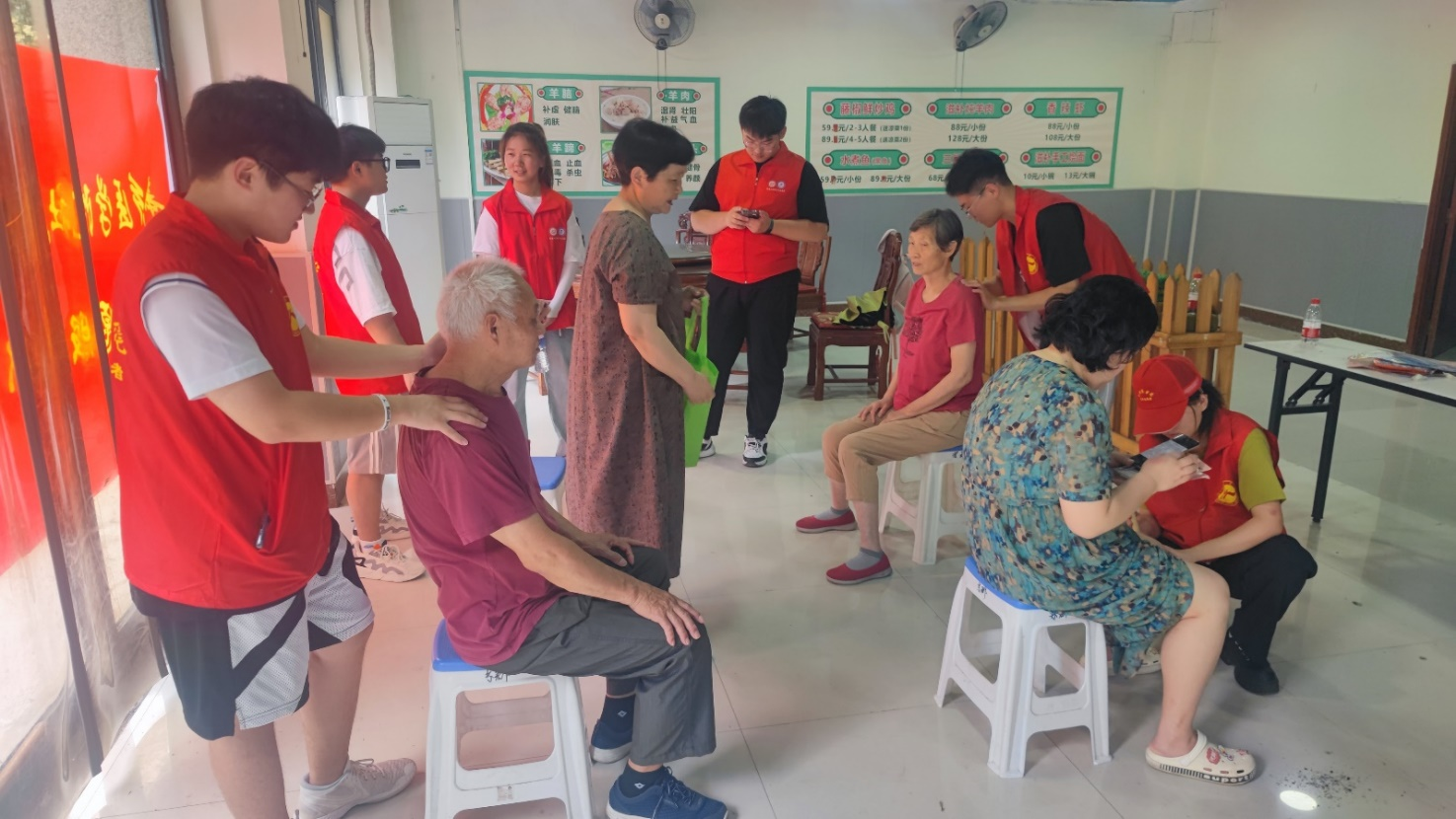 活动现场,我校大学生红十字协会和针灸推拿协会成员在社区进行志愿服务。大学生红十字协会向社区居民进行了CPR(心肺复苏术)的演示教学,并向社区居民进行了关于心肌梗塞、心肺复苏、中暑等常见急救常识的宣讲。演示摊位前,居民向社团成员学习急救知识并模拟操作。针灸推拿协会为居民义务推拿、艾灸、刮痧,同时,也为居民进行了关于日常养生科普。