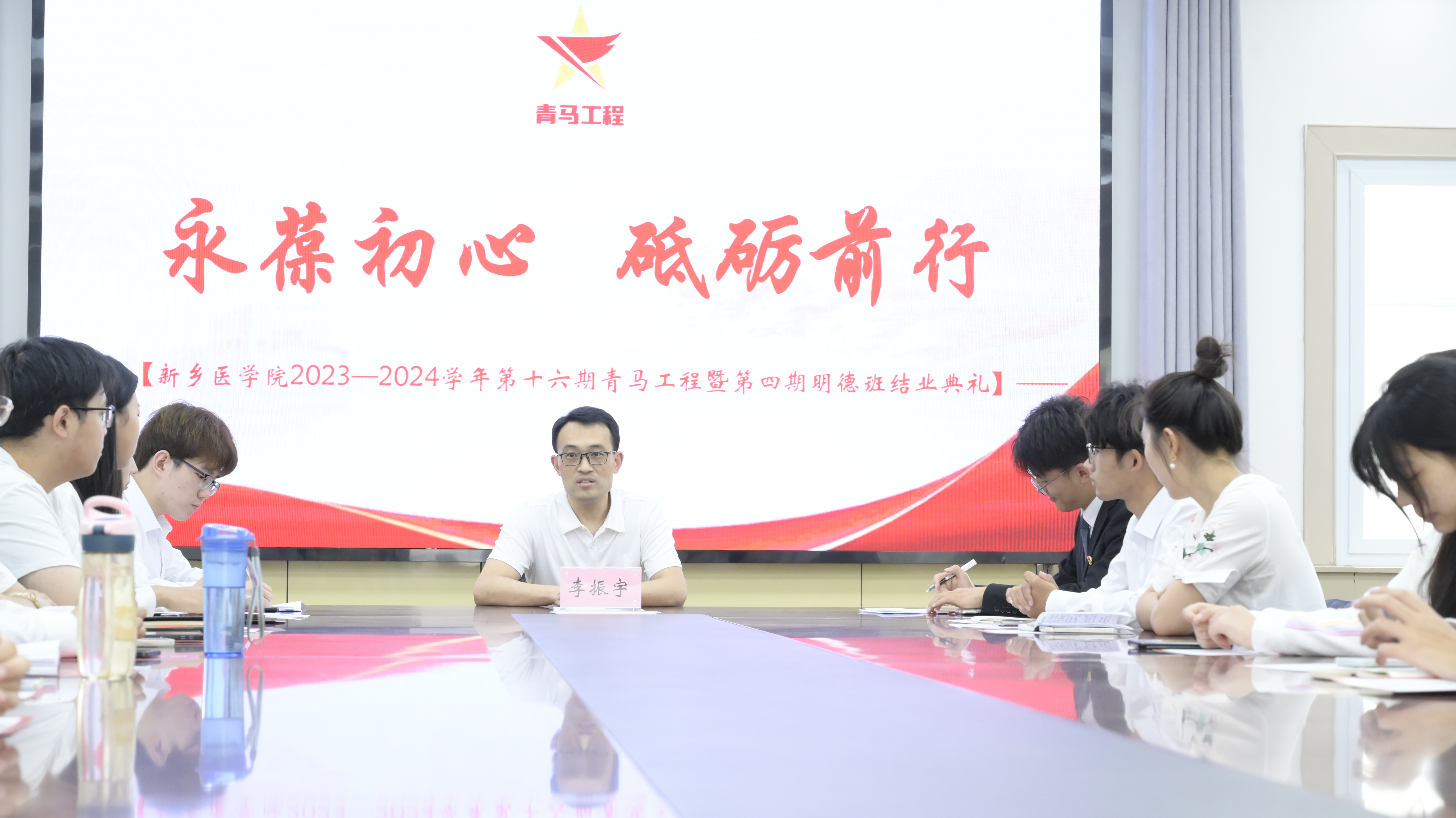 6月8日上午,华亿在线体育(中国)官方网站青年马克思主义者培养学校第十六期暨“明德班”第四期结业典礼在务实楼会议室举行。校团委副书记李振宇和明德班第四期全体学员参加会议,结业典礼由明德班班长杨鹏飞主持。