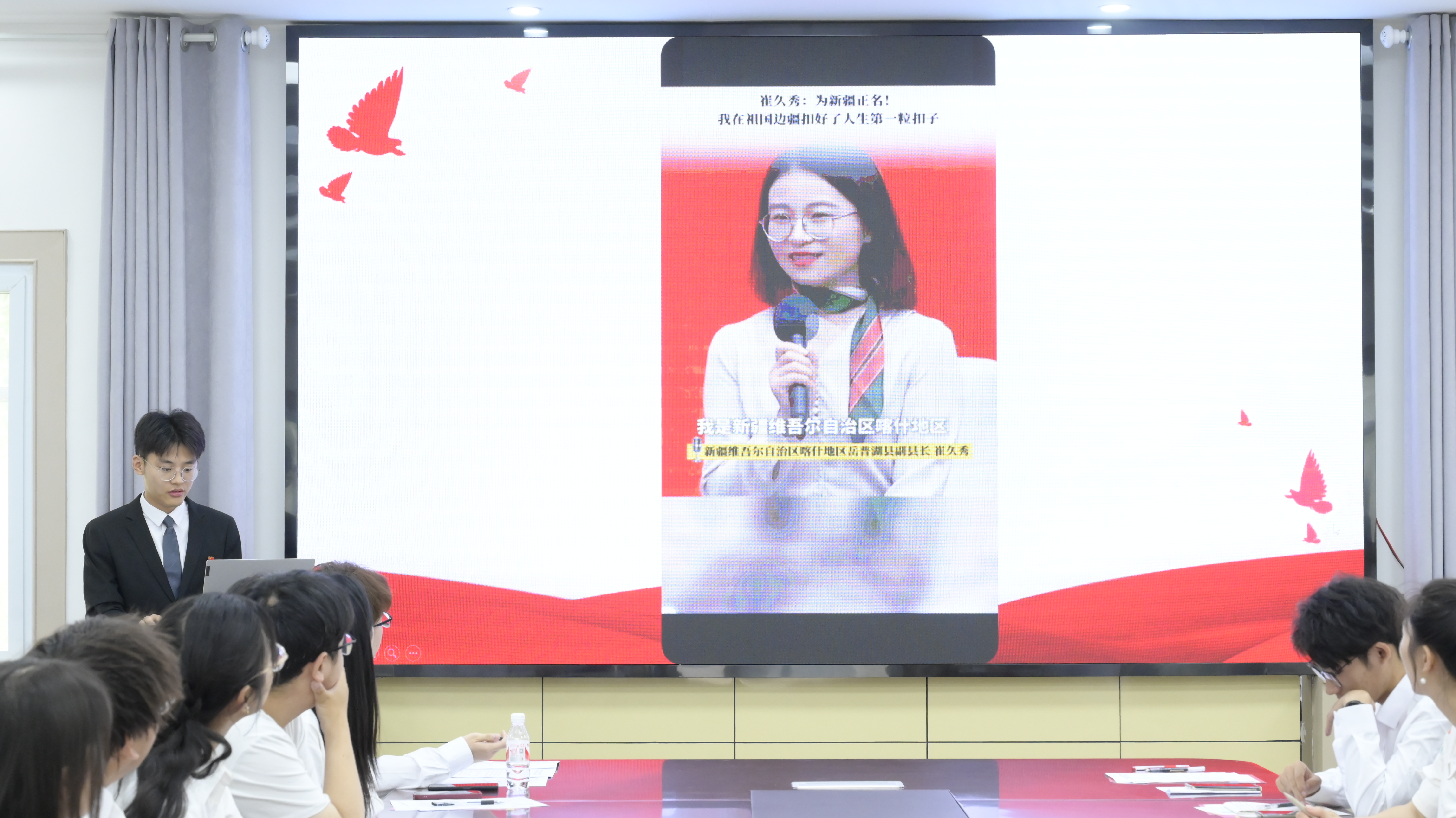 明德班第四期班委代表李子培发言。她表示,对马克思主义理论和中国共产党的学习更加坚定了自己的理想信念和人生追求,参加宣讲等活动也提升了自己的思维能力、沟通能力和团队协作能力,使自己得到了全面的提升。学习马克思主义,明德班只是一个开始,要将所学所得应用到实际生活中去,不断践行马克思主义理论,真正成为合格的共产主义事业接班人。