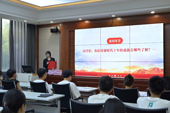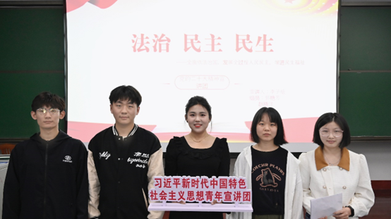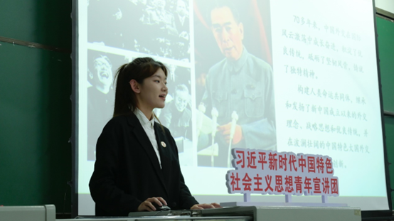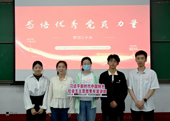宣讲团成员分为四组,分别以“新时代伟大成就伟大变革与中国式现代化”“新的历史节点与挑战机遇 从二十大报告畅谈人类命运共同体宏伟蓝图”“走进二十大青年工作 感悟优秀党员力量 以党的二十大精神推进青年成长成才”“全面推进依法治国 发展全过程人民民主 增进民生福祉与推进文化自信 铸造社会主义文化新辉煌”为主题,旗帜鲜明、内容详实、语言生动,在我校青年学生群体中形成了学习贯彻习近平新时代中国特色社会主义思想和党的二十大精神的良好氛围。