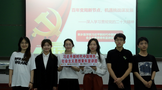 为深入学习宣传贯彻落实习近平新时代中国特色社会主义思想和党的二十大精神,让党的二十大精神在校园里落地生根、开花结果。2月至6月,校团委组织校“明德班”学员成立习近平新时代中国特色社会主义思想青年宣讲团,先后面向我校基础医学院、药学院、弘毅书院等16个学院(书院)开展习近平新时代中国特色社会主义思想专题宣讲活动,活动覆盖达两千余人。