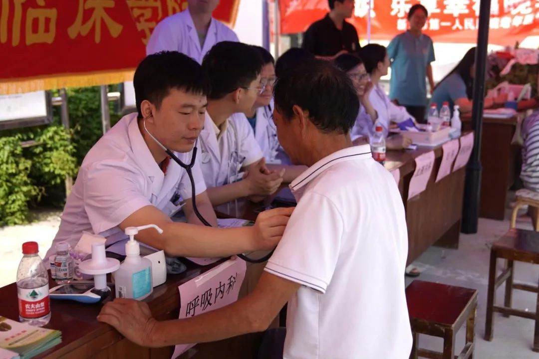 郭凯英一行来到村委会大院“三下乡”义诊现场,深入了解义诊项目设置和进展情况,了解群众实际医疗卫生需求,亲切慰问附属医院专家教授与实践团队成员并向他们发放防暑慰问包。医疗团队及学生志愿者为群众提供血压测量、血糖检测、骨密度检测、常见病咨询等在内的多项免费医疗服务,同时还开展详细的问诊和健康指导,帮助乡亲们了解自己身体健康状况,掌握日常生活中疾病预防和控制措施。