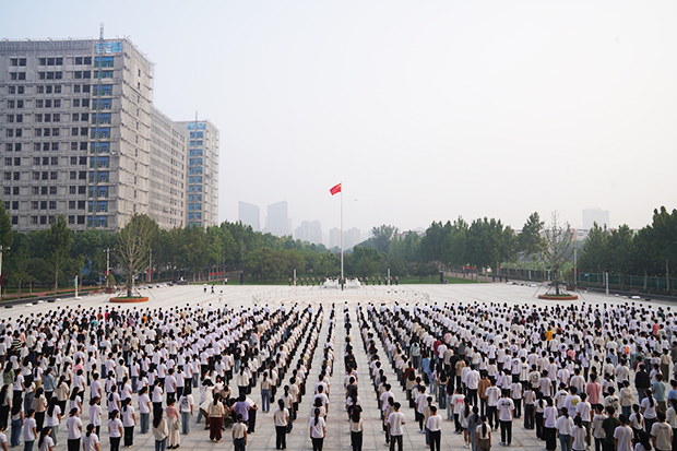 9月9日,新学期升国旗仪式在北校区图书信息楼北广场举行。全体在校校领导出席仪式。相关职能部门负责同志,各基层党组织书记、副书记,各书院、学院团委书记、辅导员及学生代表1200余人参加。