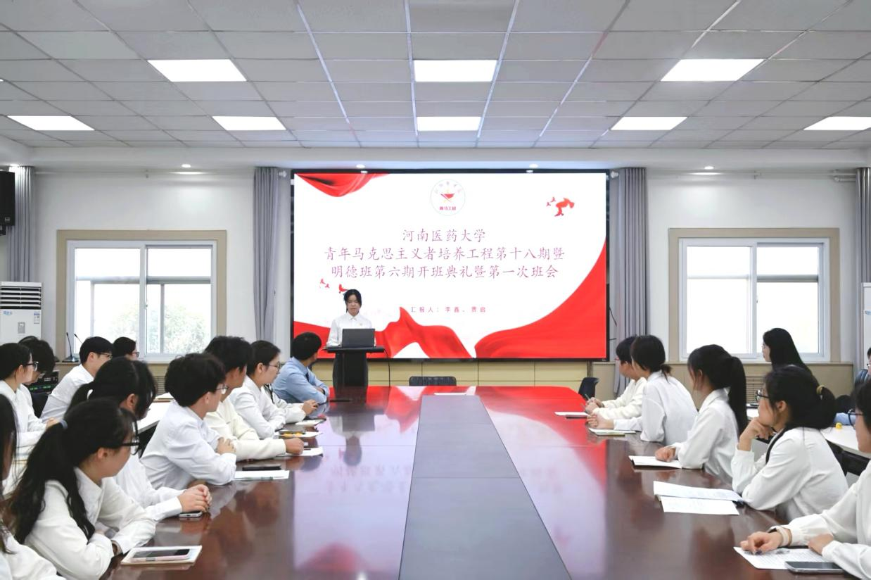 为深入贯彻习近平新时代中国特色社会主义思想和党的二十届三中全会精神,认真落实共青团中央关于“青年马克思主义者培养工程”的部署要求,紧扣立德树人根本任务与学校医学人才培养定位,11月15日上午,我校青年马克思主义者培养工程第十八期暨“明德班”第六期开班典礼在务实楼四楼大会议室隆重举行。“明德班”第六期全体学员齐聚一堂,共同开启青马培养与成长实践的新征程。典礼由明德班第六期班长李鑫主持。