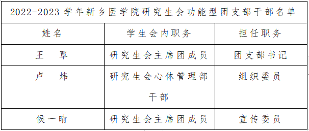 现拟定研究生会功能型团支部干部名单,公示如下: