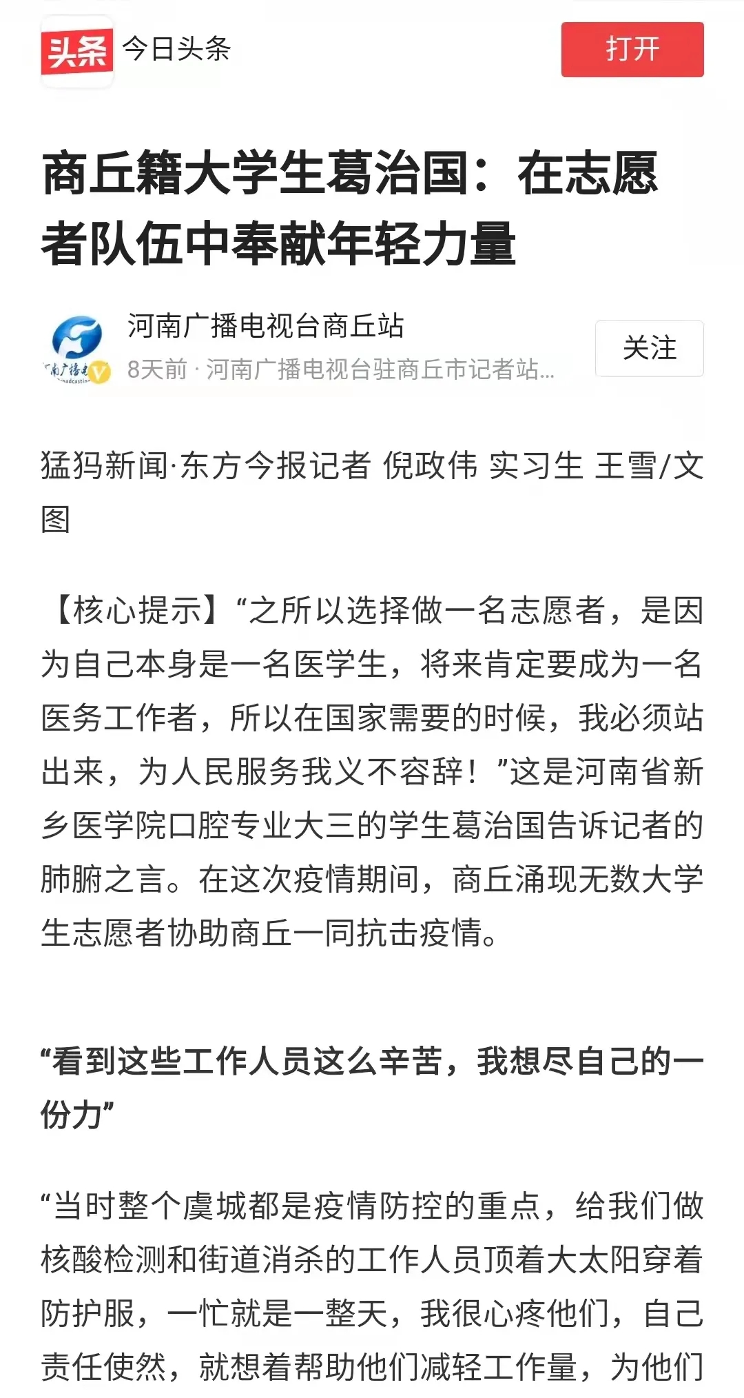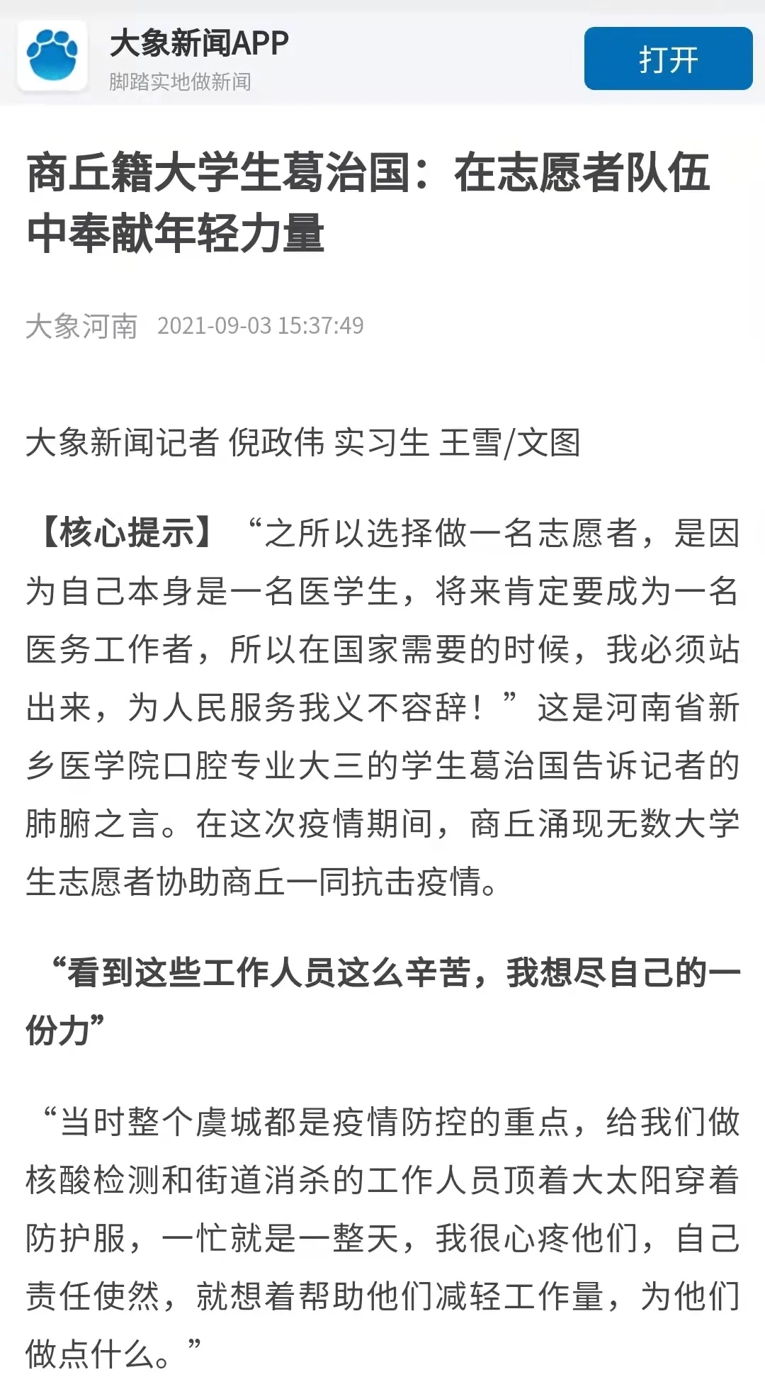 商丘籍大学生葛治国:在志愿者队伍中奉献年轻力量