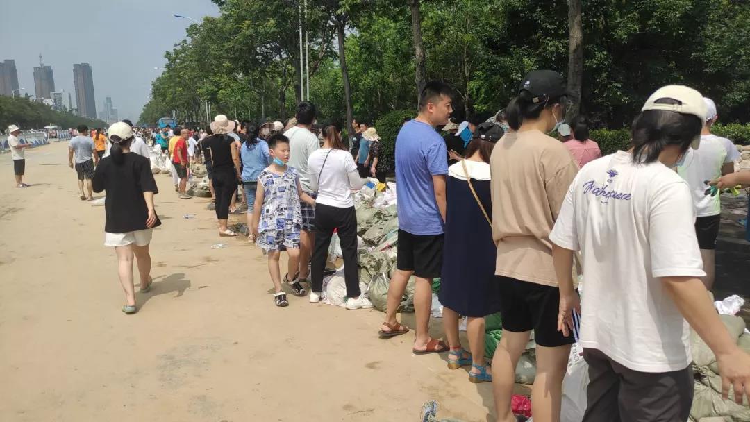 当七个水库同时泄洪,卫河、共产主义大桥的水位不断上涨,水从北边不断冲向市区,守护新乡刻不容缓,于是我跟着几个朋友自发地去牧野湖扛沙筑坝。牧野湖到处都是志愿者,撑袋,装沙,几个人接力运送,成功筑起了第一道防线,我们相拥欢呼。此时任何的身份都显得苍白无力,我们都是守护家园的新乡人。