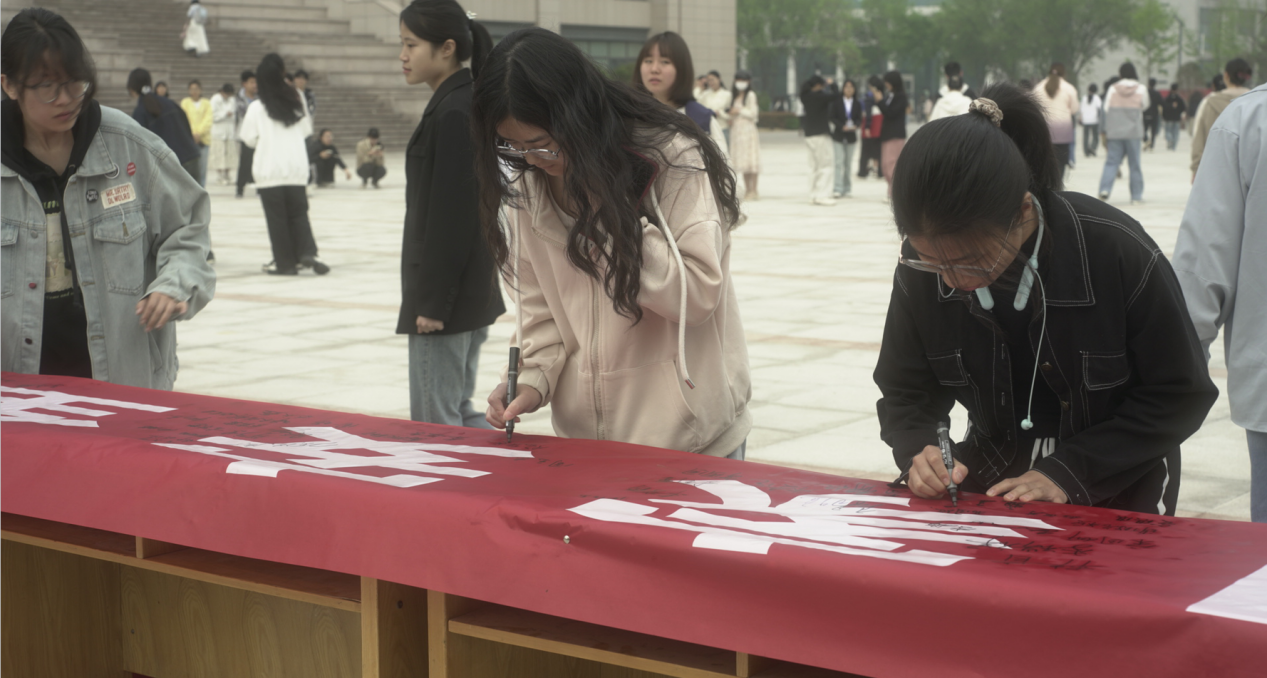 我校师生代表在“国家安全,我们在一起”的条幅上签名,表达了师生做国家利益捍卫者、国家安全守护人的崇高信念和愿望。