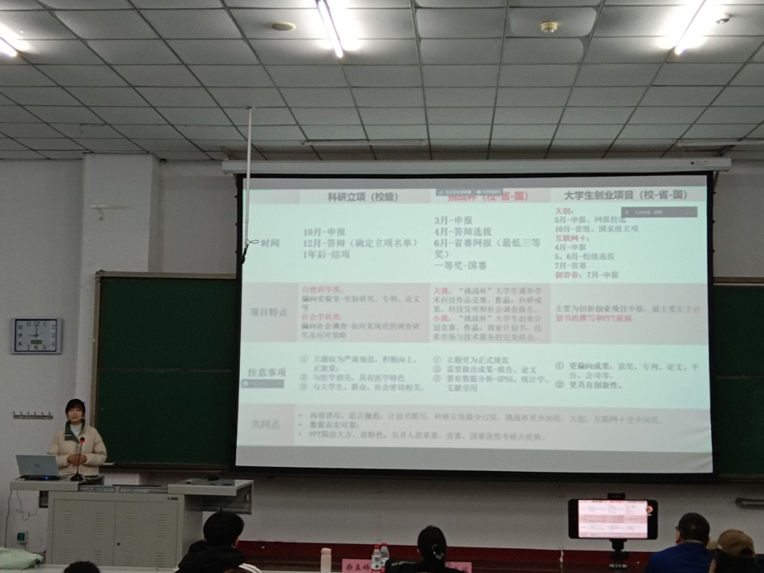 毛会丽老师介绍了“挑战杯”竞赛章程,着重讲述了申报表的撰写、创业计划书的组成、填写及相关证明材料的书写,特意强调扉页、目录、执行概要信息的书写格式及要求,在核心技术信息、行业与市场分析、营销策略、生产运营等方面也进行了分析。在与同学交流的过程中,老师热情的为大家解答疑惑,帮助大家更深入地了解“挑战杯”的内容,使大家受益匪浅。