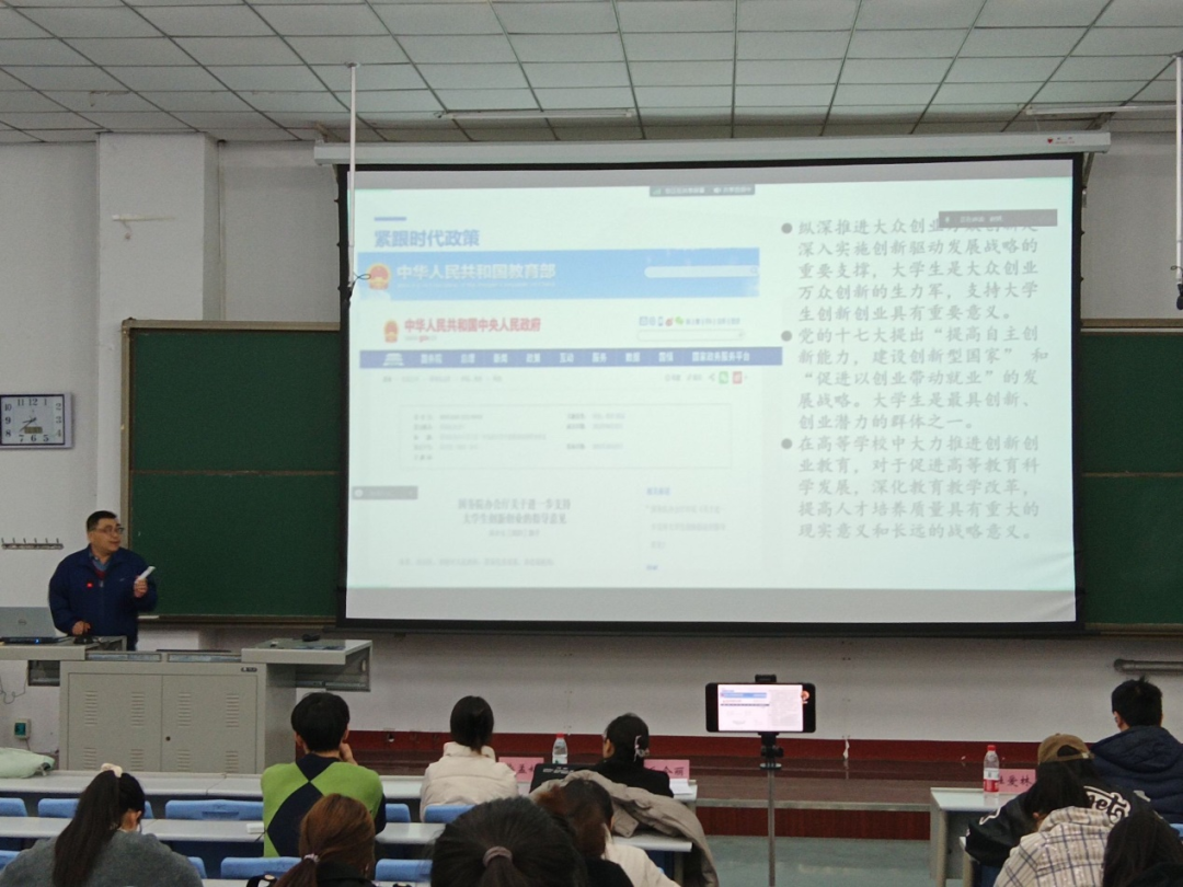 杜爱林老师重点强调了创新对于我们大学生的意义深远,深入而具体地介绍了近年来“挑战杯”作品侧重的方向,在作品方向的确立上建议大家要综合考虑作品的科学性、创新性、落地性等,点出要注重理论与实践相结合;倡导大家关注社会时事热点。在提问环节中,同学们积极参与互动,杜爱林老师对同学们的问题做出详细解答,帮助同学们找到前进的方向。