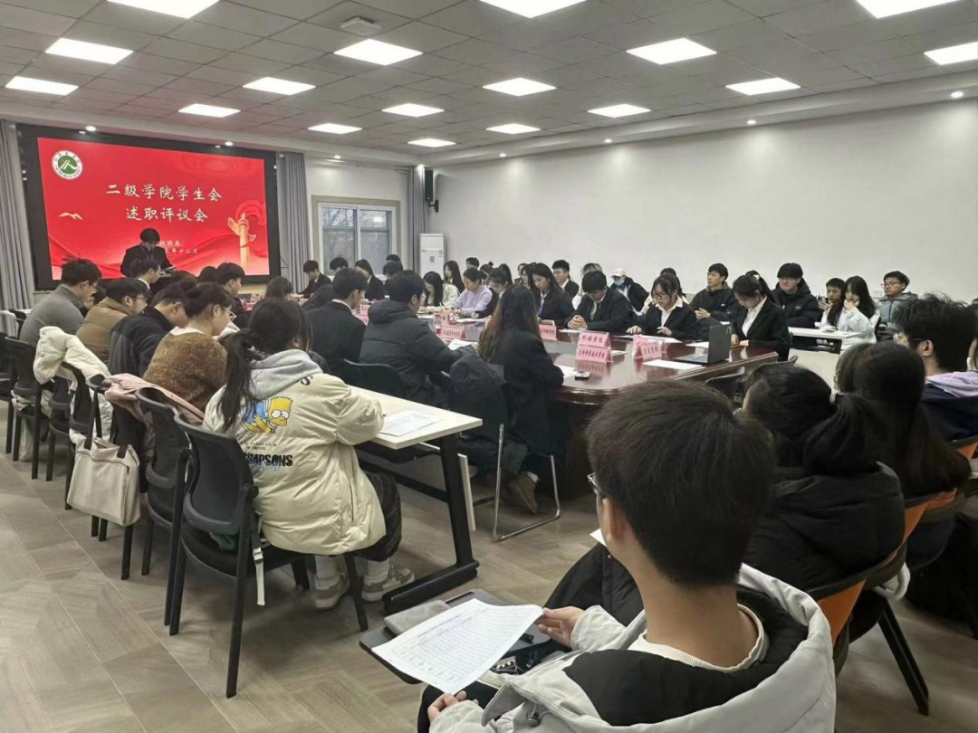 12月28日,我校二级学院学生会2023-2024学年第一学期述职评议会在南校区务实楼会议室召开。校团委副书记、学生会秘书长马仁娥、校学生会主席团成员、二级学院学生会执行主席及学生代表参加会议。