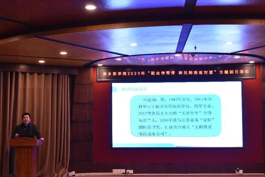 为帮助低中年级学生做好职业规划、积极实习实践,帮助毕业年级学生了解就业形势、理性就业择业,11月30日19:00由校团委主办,药学院团委承办的华亿在线体育(中国)官方网站“就业传帮带·师兄师姐面对面”——“筑梦青春 职引未来”主题团日活动在南校区第三报告厅举办。本次活动特邀药学院优秀校友刘伟、宋思涵来校,面向学生讲述个人就业选择和奋斗故事。校团委、药学院相关人员以及2023级学生代表100余人参加此次活动。