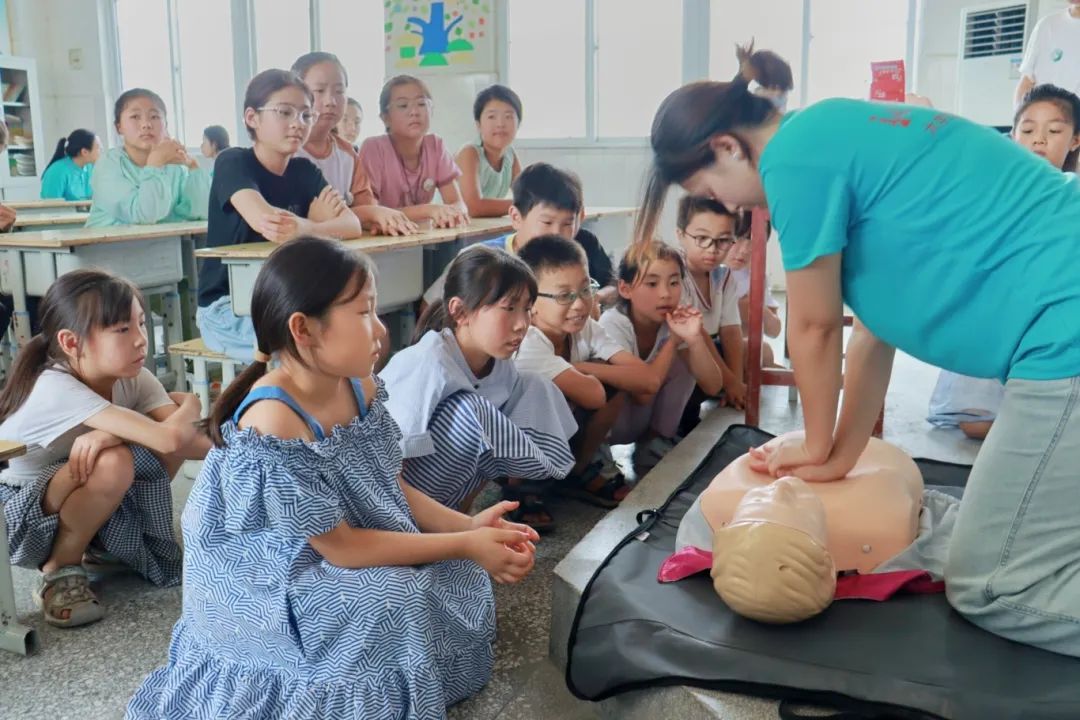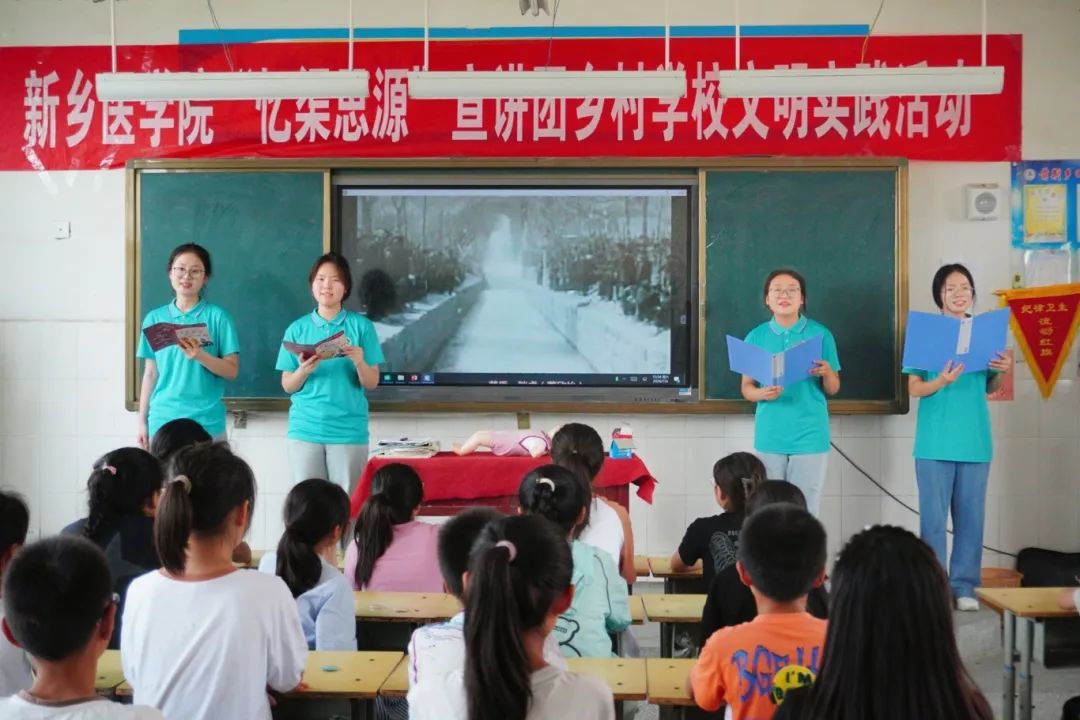 实践团队分别深入荆隆宫乡两所小学,发放宣传资料与文创徽章,讲解心肺复苏与海姆立克急救知识,使用假人模型为同学们展示正确操作。课程间穿插《红旗渠》故事与《七律·红旗渠》诵读,弘扬红旗渠精神。影片《理想照耀中国》强化学生社会责任感。结束后,团队成员对同学们进行积极互动,并对课堂表现情况优秀的同学进行证书颁发和学习用品发放。最后,实践团队为同学们讲解七步洗手法的步骤,同时强调疾病预防的重要性。