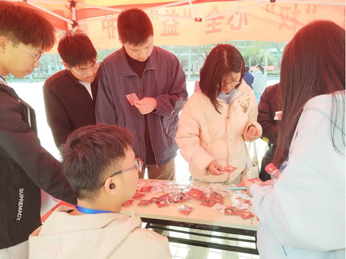 同学们有序参与知识问答环节,领取纪念品