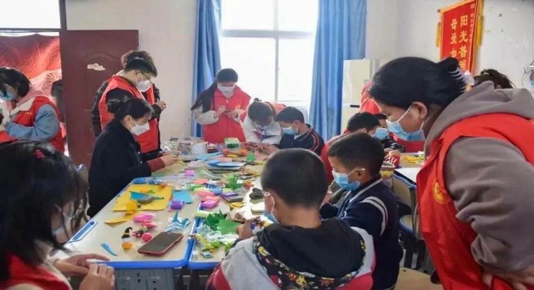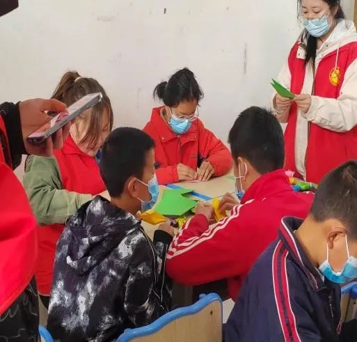 阳光明媚,清风微徐。阳光村的负责人丁巧荣院长热情地迎接了志愿者。在和煦的阳光中,孩子们略显羞涩,他们探出脑袋,用好奇的目光上下打量着到来的志愿者们。为尽快与孩子们熟悉起来,志愿者们带着他们开展了折纸课堂、橡皮泥课堂和绘画课堂等丰富有趣的活动,一张张彩纸被折成千纸鹤和纸飞机,随着孩子们的烦恼被一齐放飞;橡皮泥被捏成栩栩如生的卡通人物,体现出孩子们纯真的童心;房屋、汽车映在画纸上,寄托着孩子们对未来的美好期望……这些活动不仅带来了欢声笑语,还丰富了孩子们的想象力并提高了他们的动手能力。在志愿者的陪伴中,孩子们从开始的害羞好奇到后来的尽情投入,放声大笑,一张张笑脸如花儿般绽放,温暖着在场的所有人。志愿者们还贴心地协助丁院长进行了阳光村的卫生打扫。