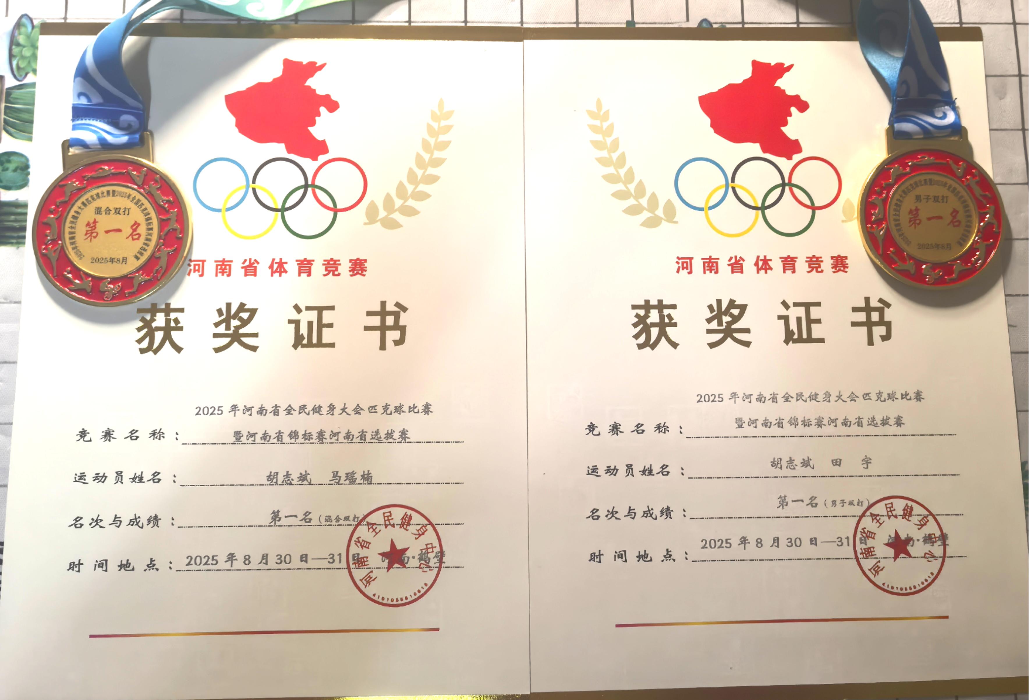 8月30--31日,由河南省体育局、河南省总工会、共青团河南省委、河南省教育厅等多部门主办,河南省全民健身中心承办的“2025年河南省全民健身大赛匹克球比赛暨2025年全国匹克球锦标赛河南省选拔赛”在鹤壁市淇滨区千鹤之舞体育中心举办。由胡志斌等12名教职工组成的我校职工匹克球代表队在比赛中表现优异,荣获“体育道德风尚奖”,胡志斌组合更是一举夺得男子双打与混合双打两项冠军,并成功入选河南省匹克球队,将备战全国匹克球锦标赛。此外,我校有4名学生也参加了此次比赛,其中第三临床学院的李孟涛、顾梦瑶和药学院的付祥佳分别获得混合双打和女子双打第五名。