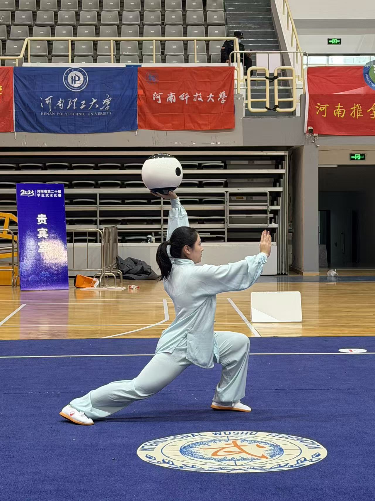 我校体育学院聂同海、张喆喆两位教师担任教练,率校武术队5名运动员出征。赛场上,我校选手奋勇争先、全力以赴,经过四天激烈比拼,成绩喜人:峻极书院陈静卓荣获女子大学本科甲组太极球第一名;麻醉学院岳芝萱分获女子大学本科甲组初级剑第四名与少林拳第五名;第一临床学院赵珂夺得女子大学本科甲组初级枪第五名。最终,我校代表队在女子大学本科甲组团体总分中位列第七。