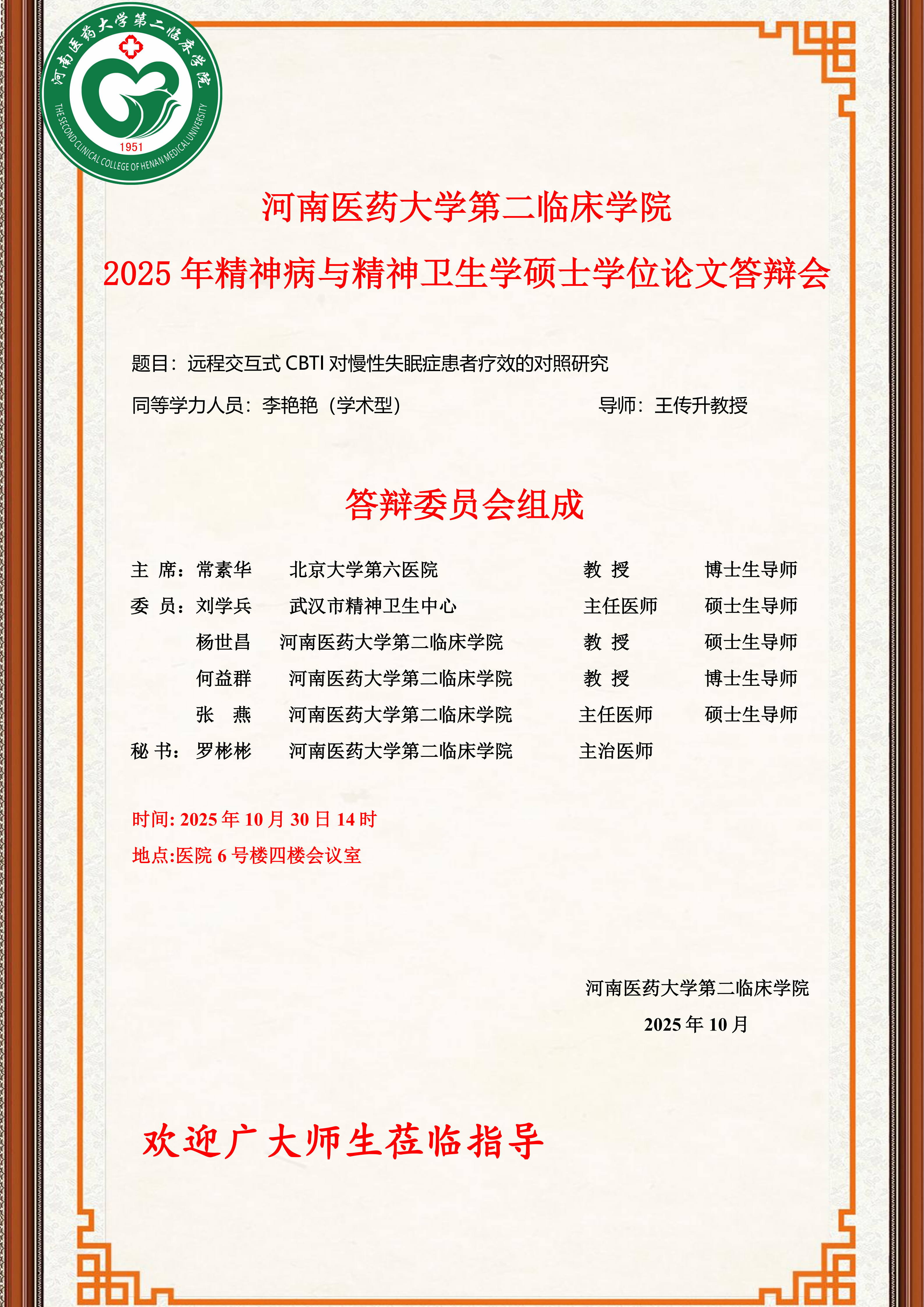 2025下半年河南医药大学第二临床学院硕士学位论文答辩会