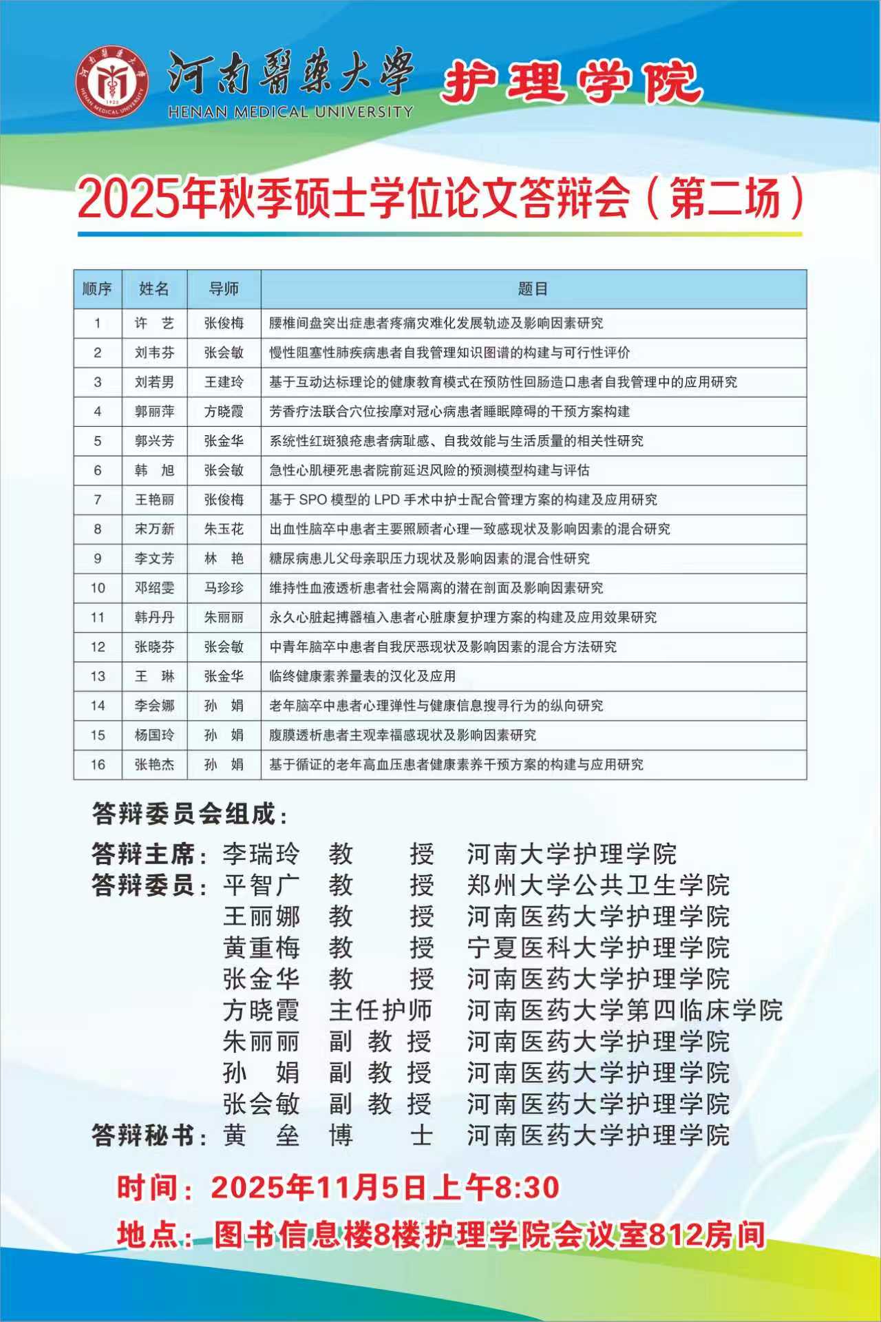2025下半年河南医药大学护理学院硕士学位论文答辩会