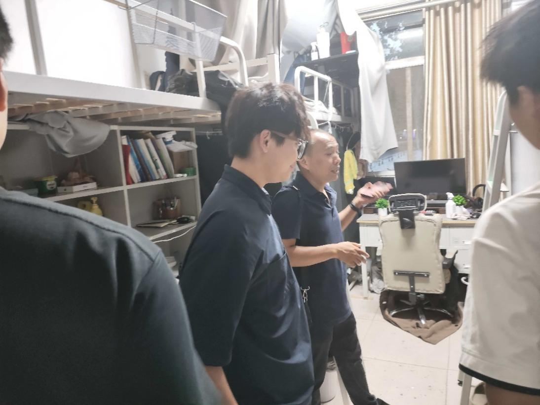 走访过程中,陈洪涛详细询问了男生宿舍同学们的学习规划、生活习惯和宿舍卫生情况,叮嘱大家要注意劳逸结合,保持良好作息,打造整洁舒适的宿舍环境。范亚桢则在女生宿舍关心同学们的返校适应情况和心理状态,提醒大家在学习和生活中遇到困难时要积极寻求帮助,并鼓励同学们保持团结互助的良好氛围。与此同时,学院对宿舍用电安全、防火防患等问题进行了检查,及时排查并指出了存在的隐患。