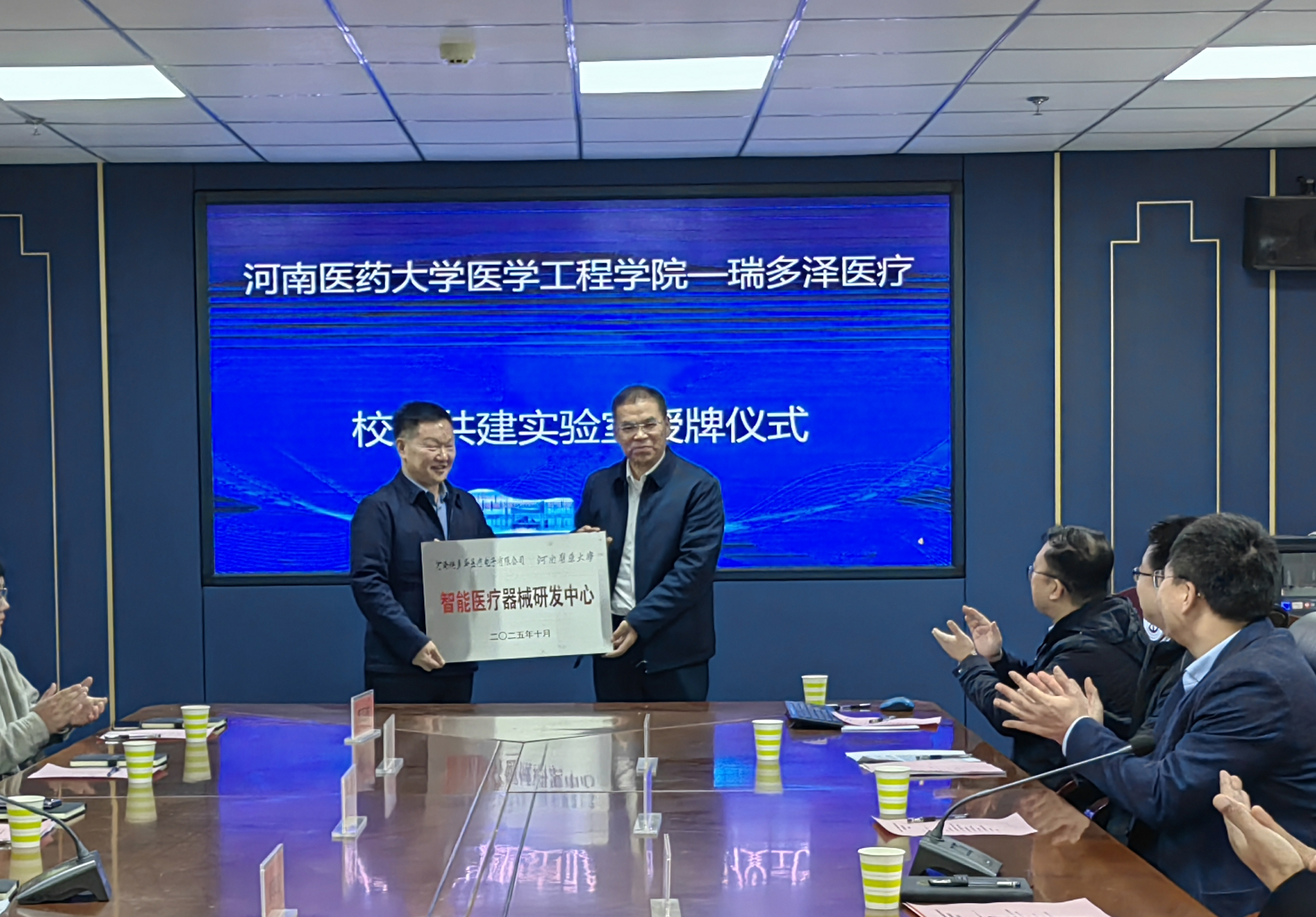 1023日上午,我院与瑞多泽医疗举行校企研发合作中心与实习基地揭牌仪式瑞多泽医疗董事长裴李杰带队参加揭牌活动,我校党委委员、副校长林俊堂和我院党政班子成员以及相关教师出席揭牌仪式。