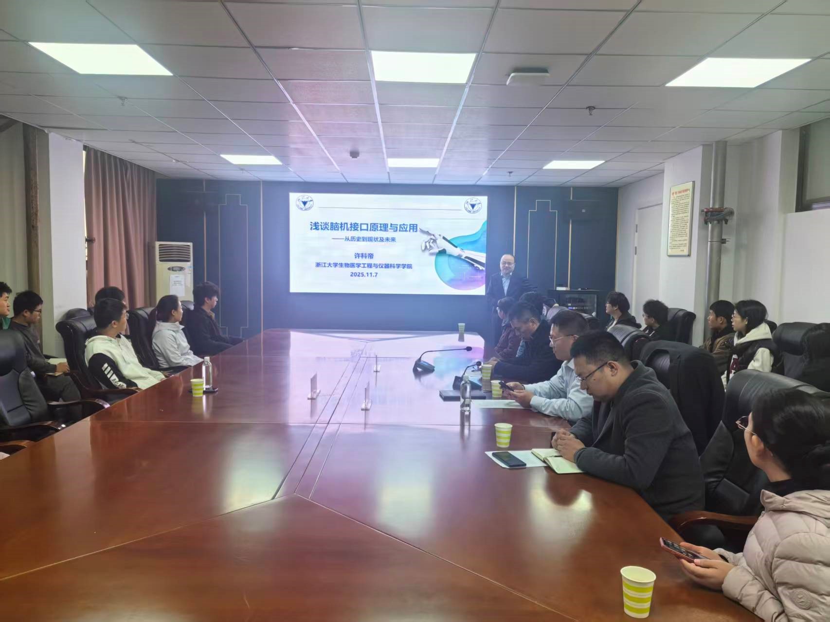 许科帝教授带来“浅谈脑机接口原理与应用——从历史到现状及未来”主题讲座。他系统梳理了脑机接口技术的发展脉络,从核心原理出发,结合多个前沿应用案例,全面展望了该技术在医疗康复、科研探索等领域的落地前景。师生就技术研发瓶颈、临床转化路径等关键方向与许教授深入交流,进一步拓宽了学术视野。