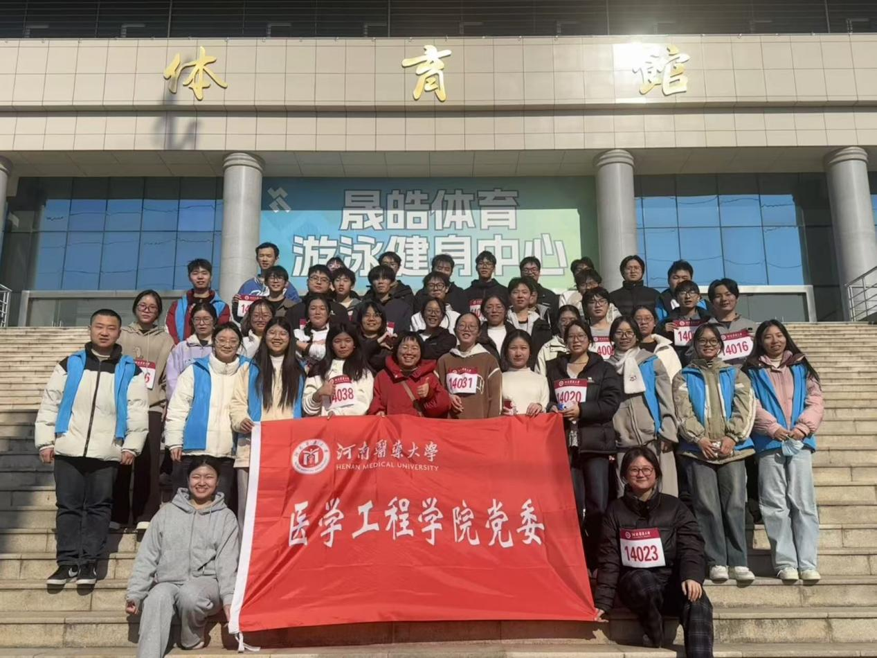 比赛当天,寒风猎猎,却挡不住医学工程学院师生的热情。大家佩戴统一标识牌,提前半小时完成集结,在工作人员引领下有序热身、相互加油。随着发令枪响,男子组率先出发,女子组紧随其后。他们的步伐或许不如专业运动员矫健,但每一步都踏得坚定有力。赛道上,同学们相互鼓励、彼此照应,形成了一道流动的风景线。有的同学体力不支时,身旁即刻会有同伴放缓脚步给予支持;有的同学调整呼吸节奏,周围便有人默契配合。凛冽空气中,同学们步伐坚定、呼吸均匀,每一次摆臂都写满青春的倔强;每一滴汗水都在阳光下折射出拼搏的光芒。