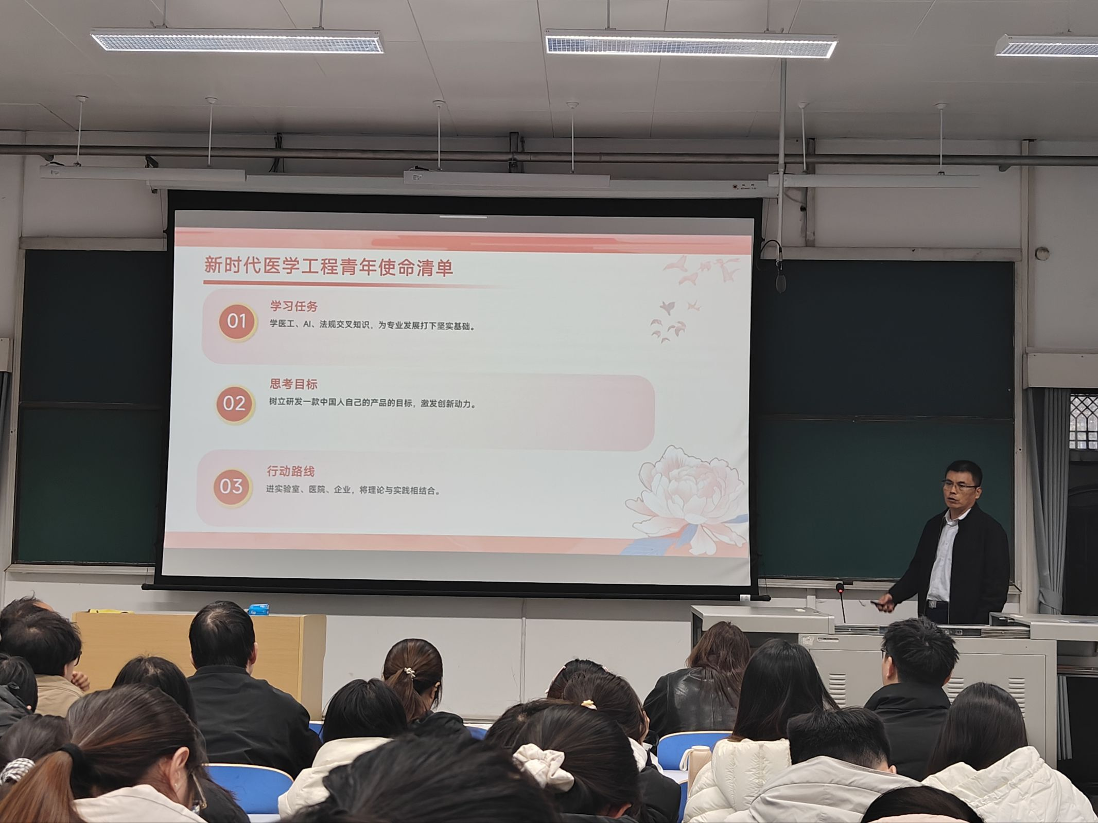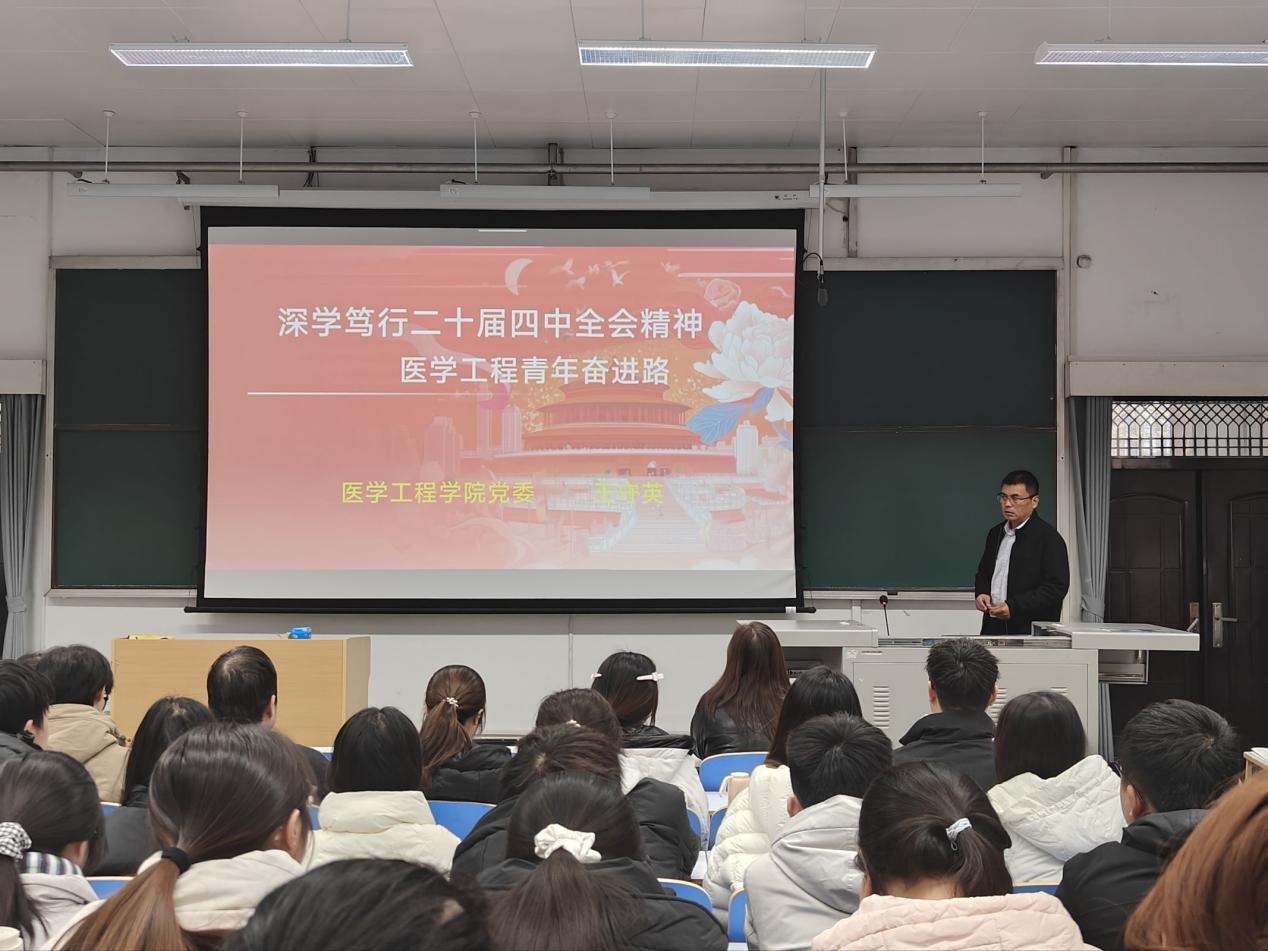 为引导学生深学笃行党的二十届四中全会精神,明确青年的时代使命与成长方向,12月8日下午在博济楼2111教室,我院党委书记王守英以“深学笃行党的二十届四中全会精神,医学工程青年奋进路”为题,为全体学生讲授专题思政课。