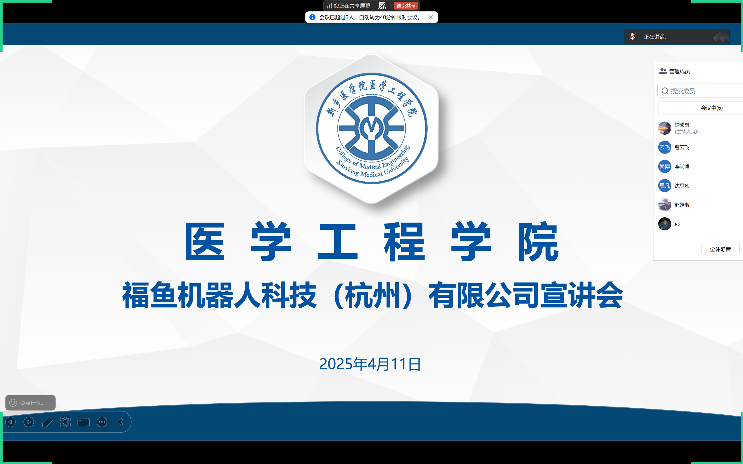 4 月 2 日,徐永涛抵达福鱼机器人科技(杭州)有限公司进行参观考察。在企业相关负责人的陪同下参观了该公司的智能康复机器人研发中心、医疗级机械臂生产线以及远程医疗协作系统演示区。随后,双方就人才培养、实习就业、产学研合作等方面展开了深入交流。福鱼机器人科技(杭州)有限公司对我院的专业设置和人才培养质量给予了高度评价,并表示希望与我院建立长期稳定的合作关系,为学生提供更多实习和就业岗位,同时也期待在科研项目合作、技术成果转化等方面开展深度合作。、
