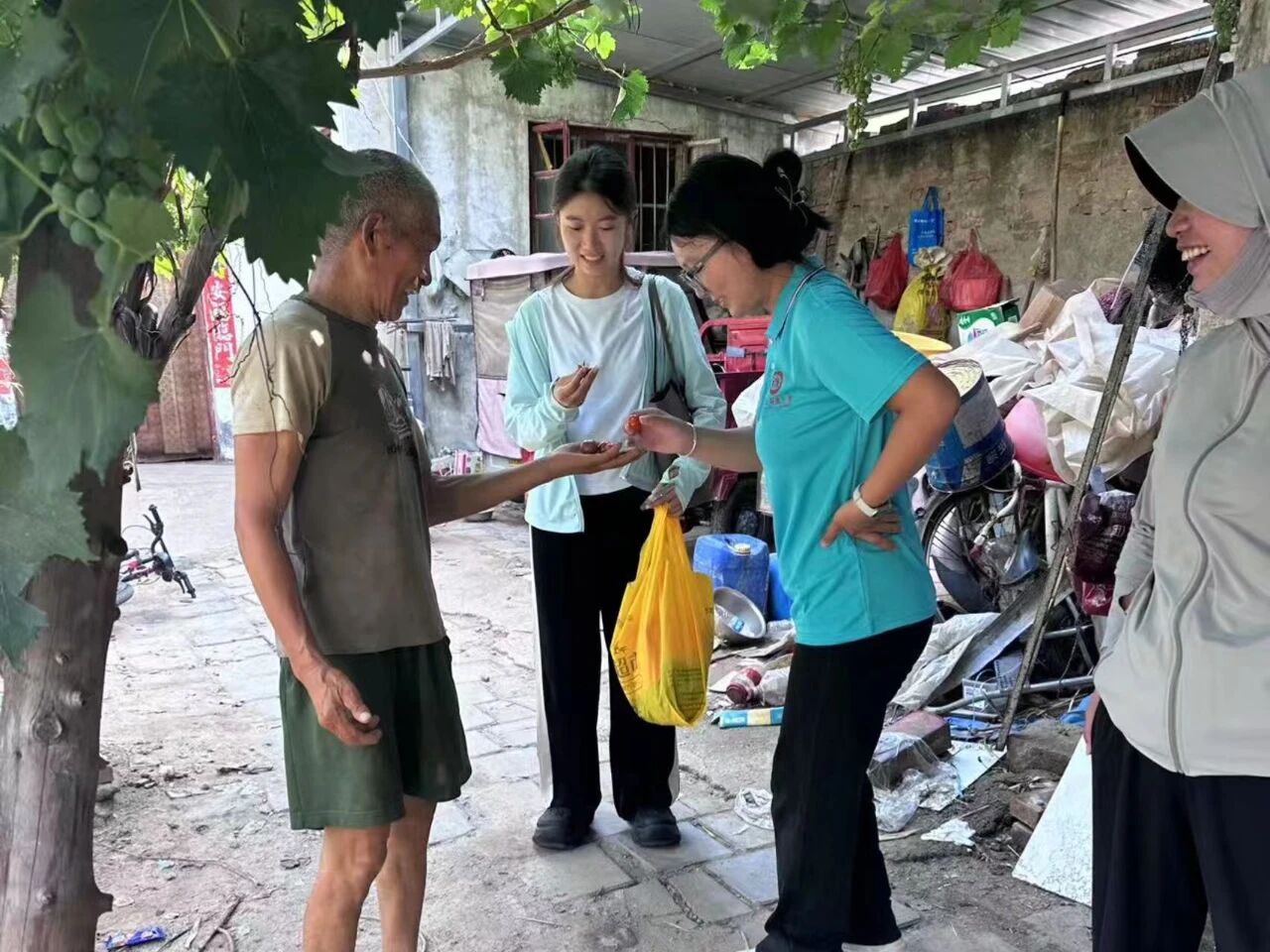 活动期间,实践团队员们行程紧凑、内容充实。7月3日,队员们抵达小店镇堤湾村和前马屯村后,迅速开启走访调研工作。沿着乡间小路,队员们与村民亲切交谈,详细了解村庄的孤寡老人,贫困人口等基本情况,认真记录村民的实际需求,为后续实践活动的开展筑牢基础。 7月4日,在村委会的带领下,队员们带着精心准备的慰问品,对村里的孤寡老人进行上门走访。每到一户,大家都关切地询问老人的身体状况和生活起居,帮助打扫屋内卫生、整理生活用品,用暖心的话语和实际行动传递关怀,让老人们感受到如家人般的温暖。 随后,实践团转赴前马屯村,在村口广场设立宣传点,向过往村民分发健康生活宣传手册,用通俗易懂的语言讲解合理膳食、夏季防暑、慢性病预防等知识,现场演示简单的健身动作,引导村民树立科学健康的生活理念,将健康关怀送到群众身边。队员们还看望了村里的贫困户和留守儿童:为贫困户送去生活物资,耐心倾听他们的困难与诉求,积极探讨帮扶思路;陪留守儿童做游戏、讲故事,鼓励孩子们好好学习、奋发向上。最后,实践团召开“初心在基层,成长在路上”总结会议,队员们结合实践经历,分享所见所闻所感,在交流中深化对基层工作的认知,凝聚服务社会的共识。