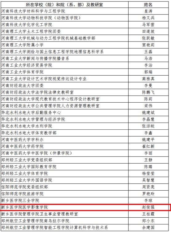 近日,根据中共河南省委教育工委、河南省教育厅对2023年度全省教育系统“两创两争”活动先进集体和先进个人评选结果公布,我院党总支书记,院长赵俊强副教授荣获“河南省文明教师”荣誉称号。
